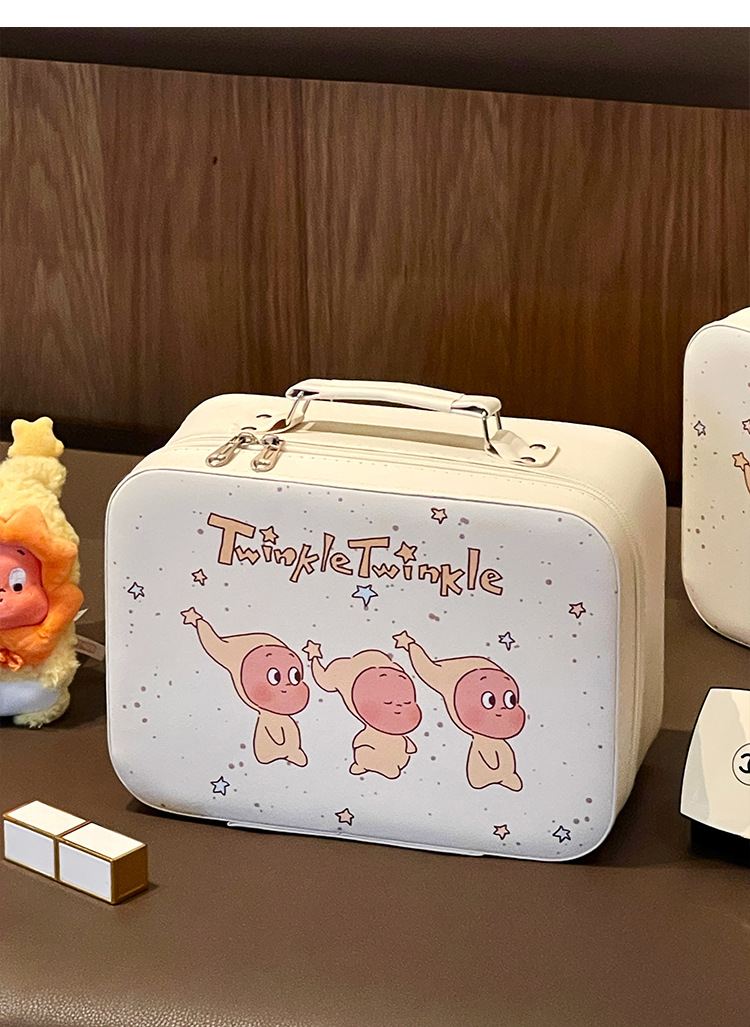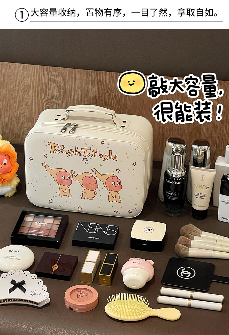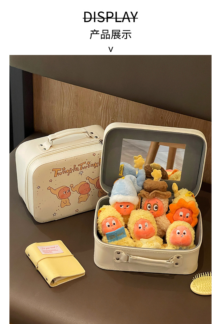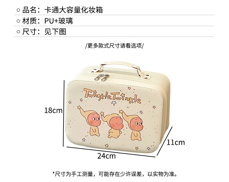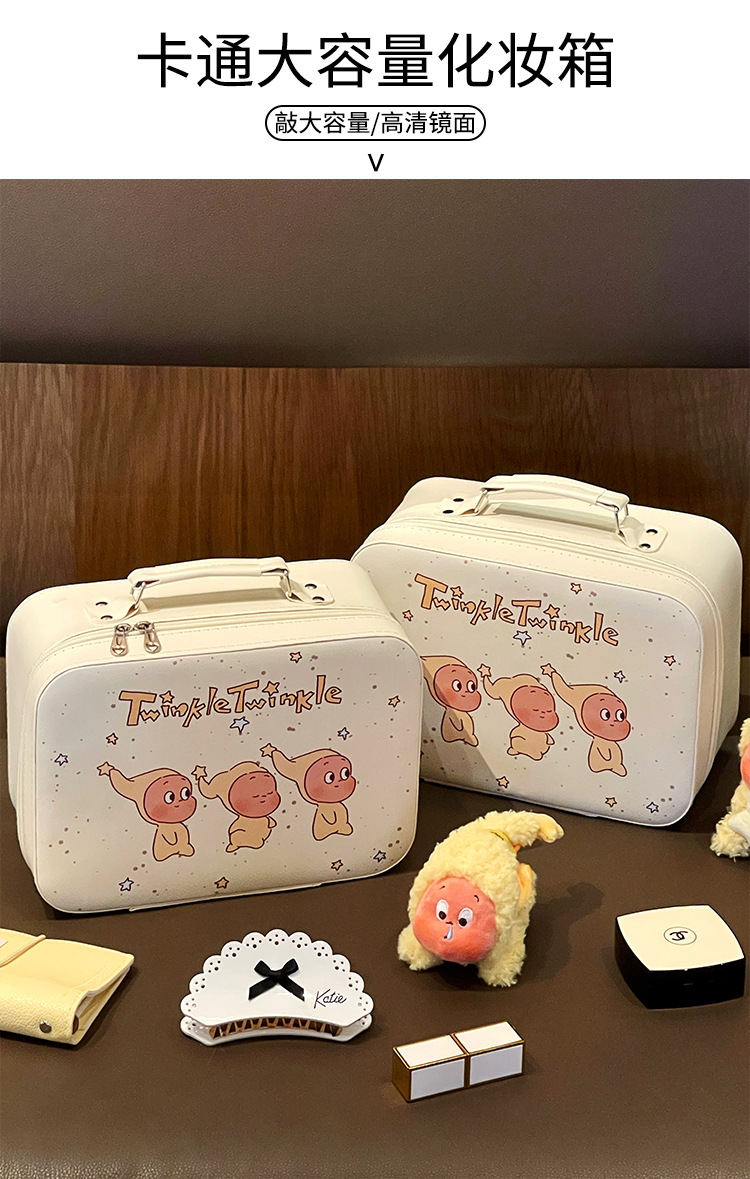 Hermosa bolsa de maquillaje portátil impermeable, caja de almacenamiento de maquillaje de gran capacidad, bolsa de maquillaje portátil con espejo