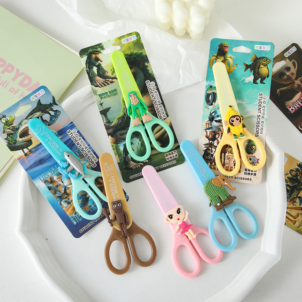 Nuevas tijeras de montaña AI dibujos animados extranjeros de montaña y mar de alto valor facial hechas a mano DIY tijeras estudiantes papelería