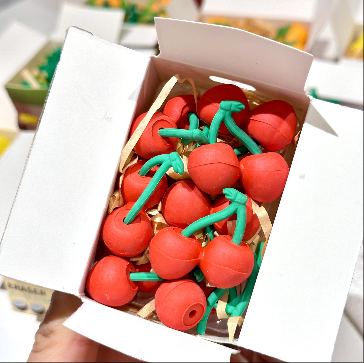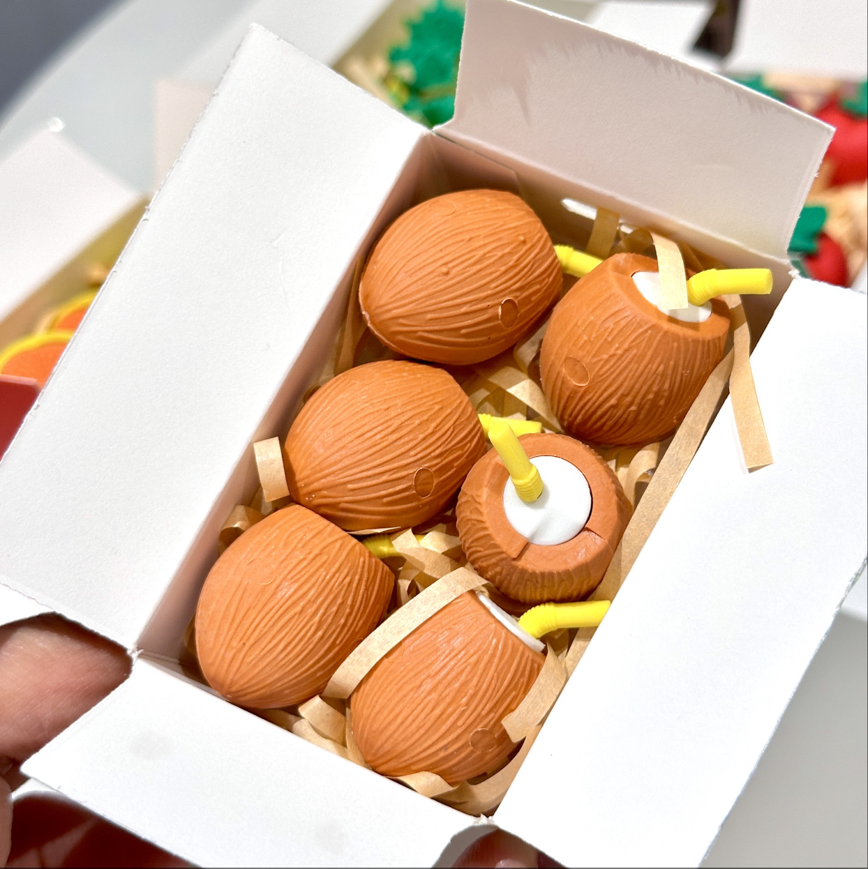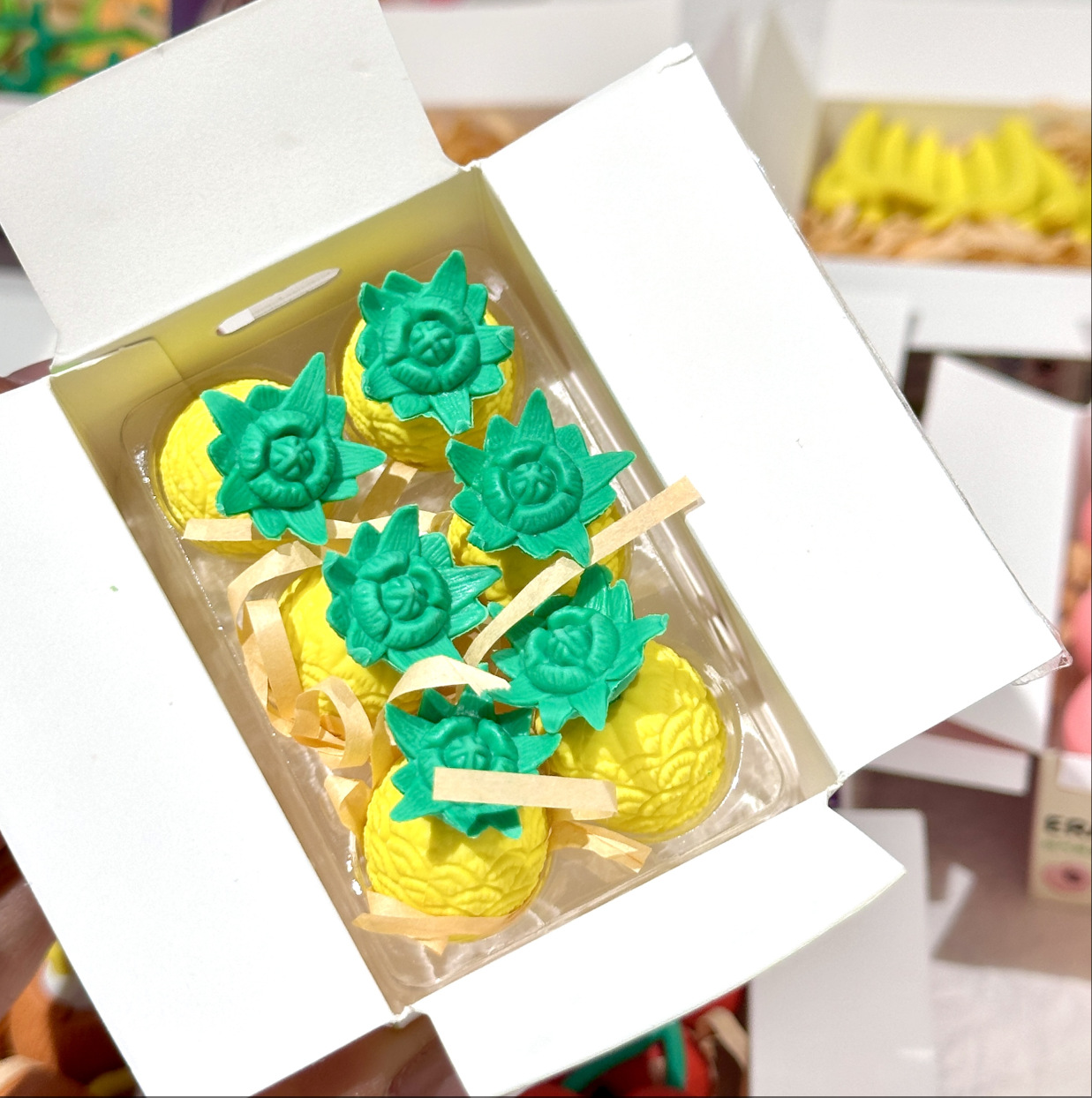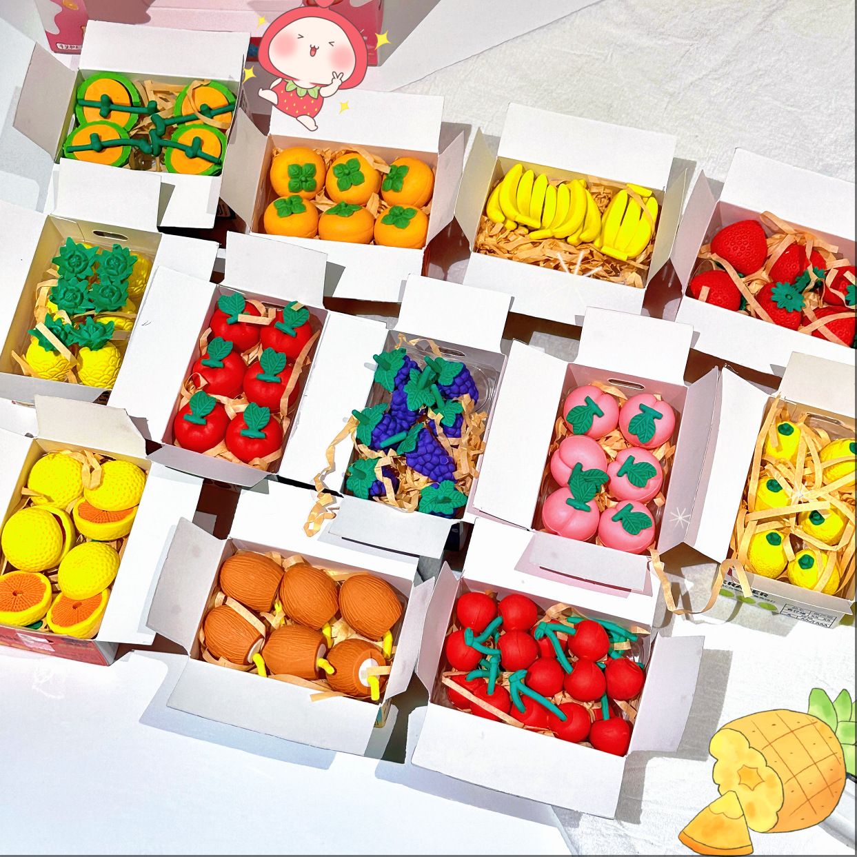 Nuevo juego de borrador de fruta de simulación, paquete expreso lindo, caja ciega de borrador de modelado divertido, limpia