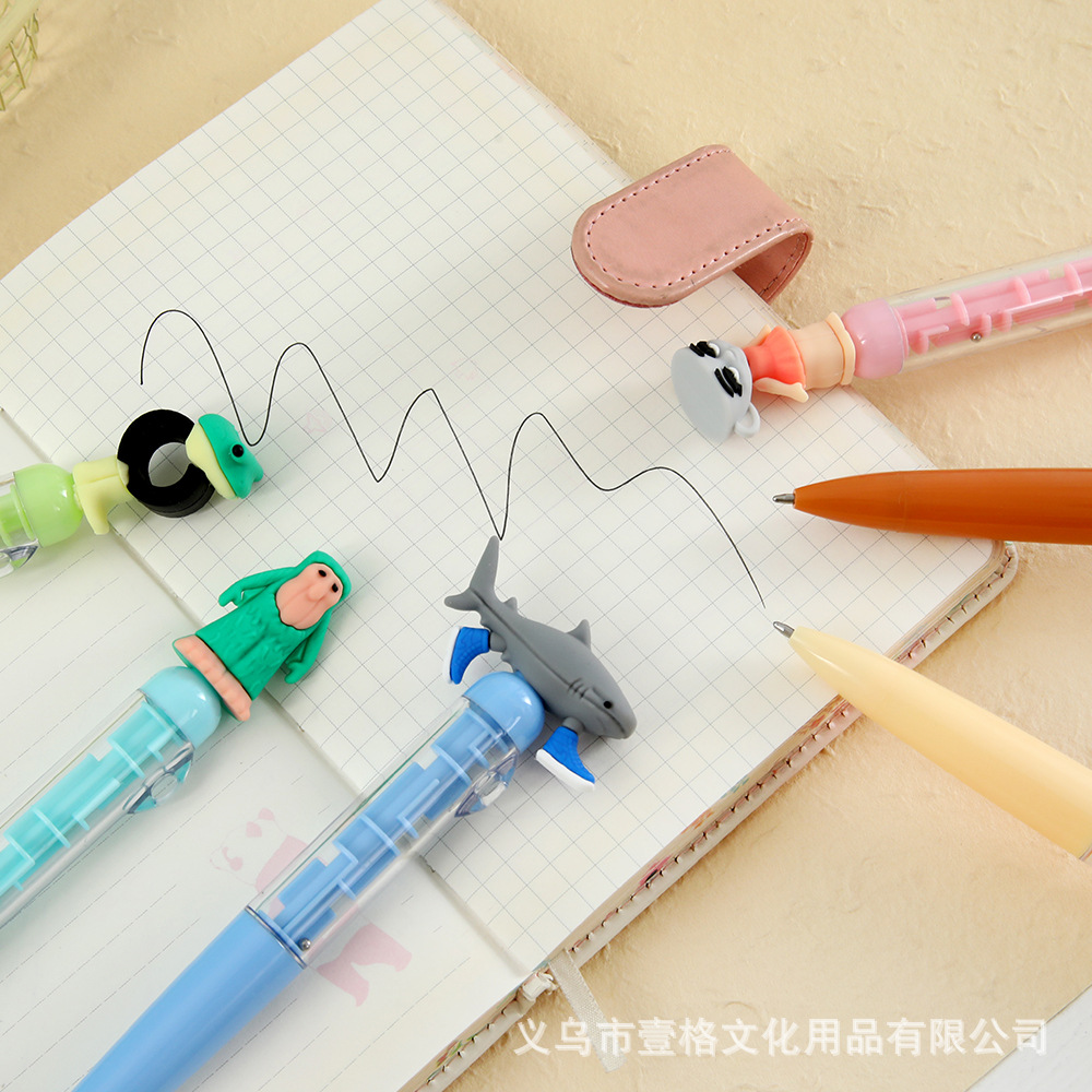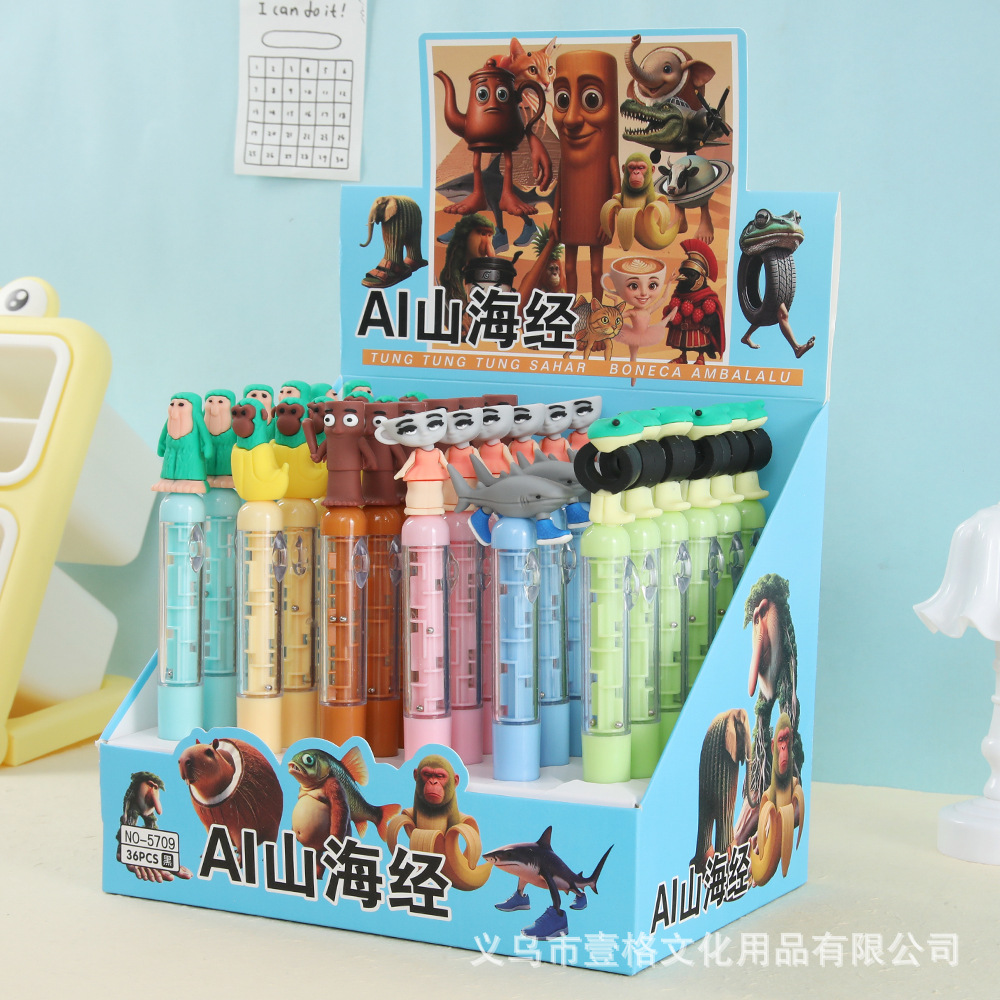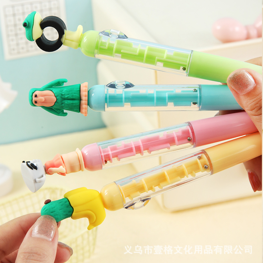 Lápiz de bolas negras de dibujos animados de montaña y mar creativo laberinto de alto valor de la cara lápiz de escritura de estudiantes de papelería