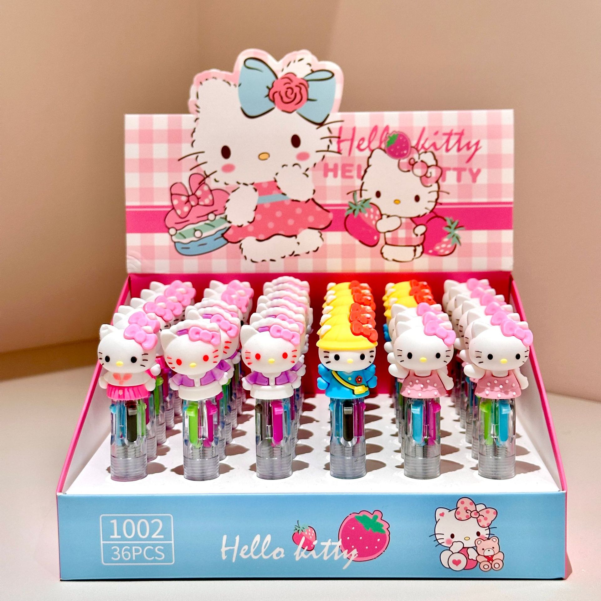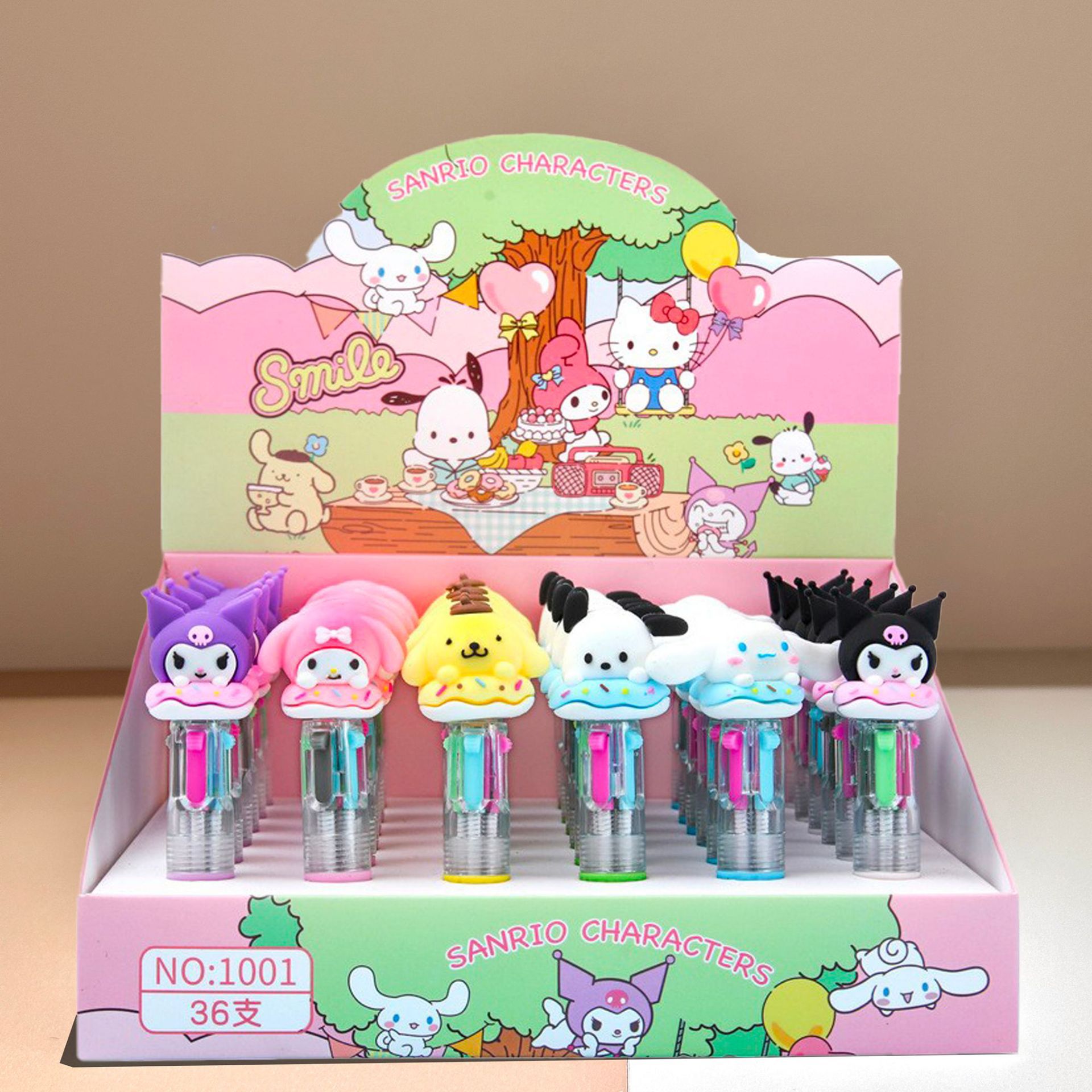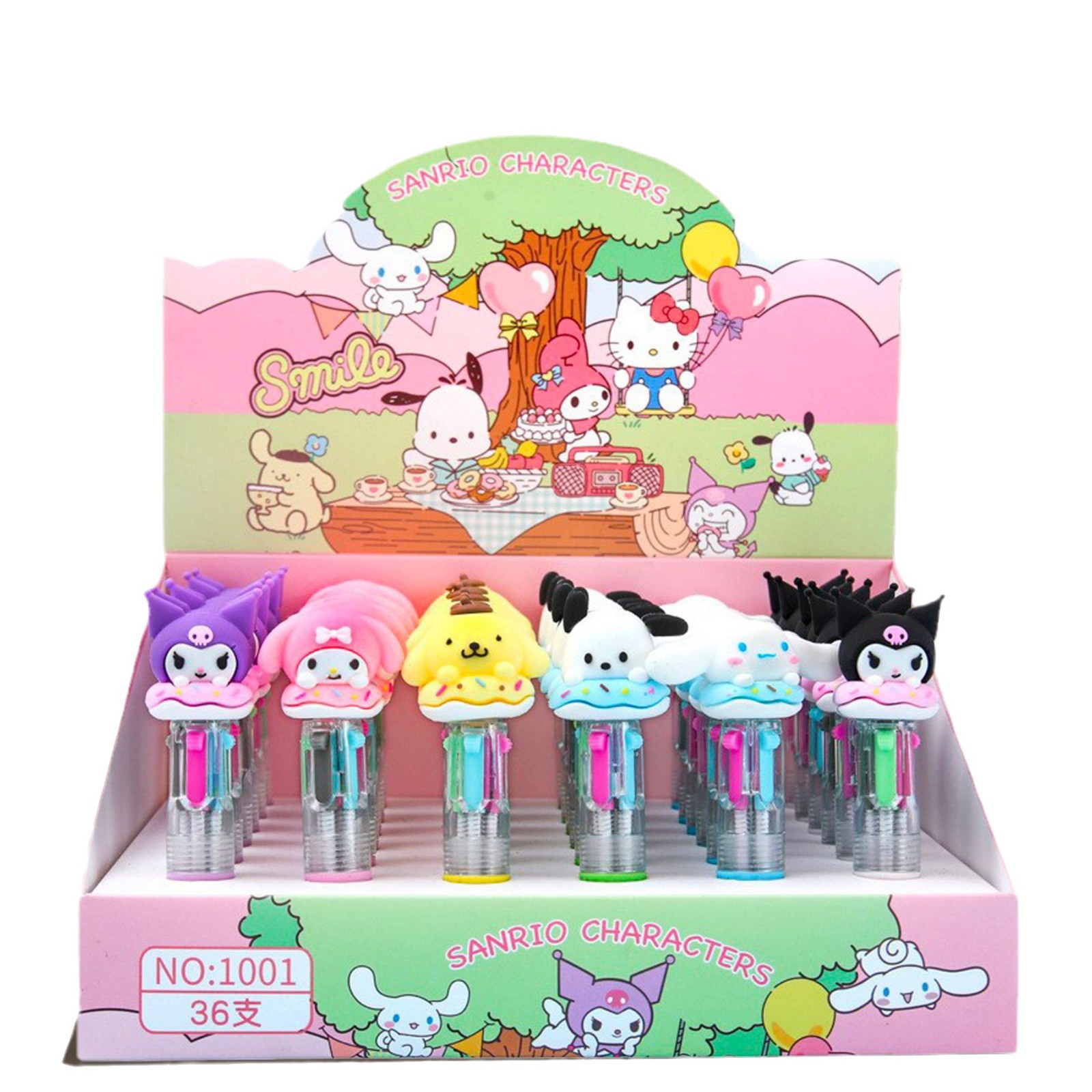 Nuevos dibujos animados pequeños bolígrafos de cuatro colores cuatro en uno bolígrafos portátiles bolígrafos de escritorio para estudiantes de primaria suministros de estudio