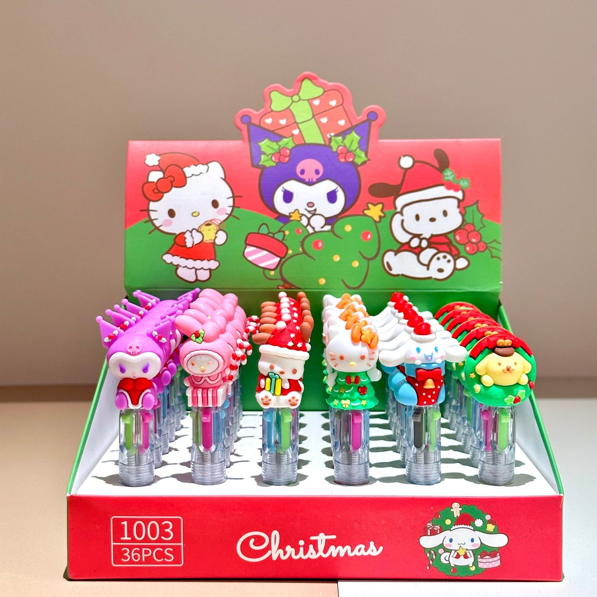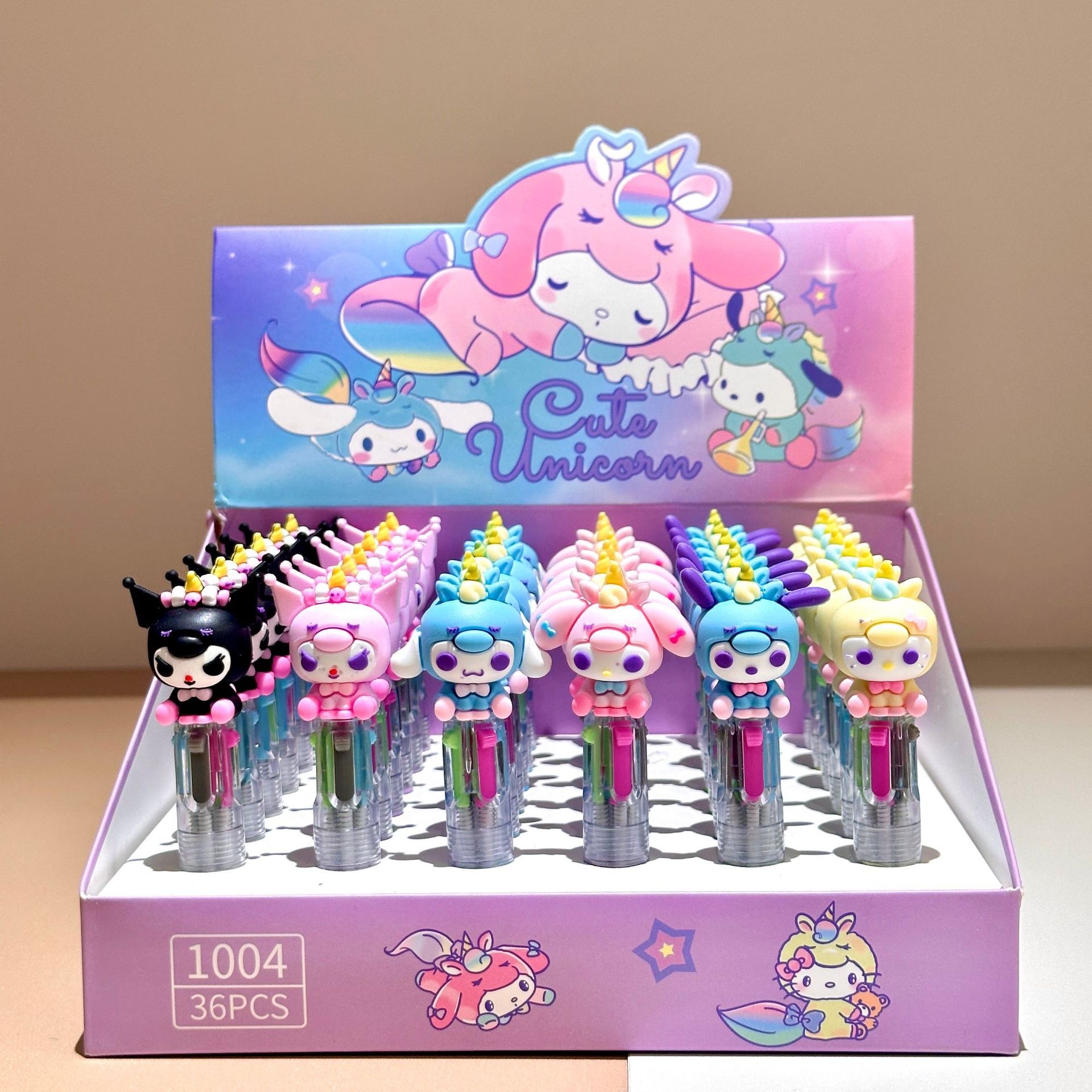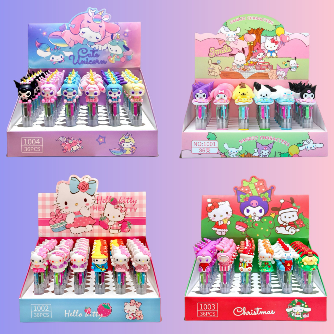 Nuevos dibujos animados pequeños bolígrafos de cuatro colores cuatro en uno bolígrafos portátiles bolígrafos de escritorio para estudiantes de primaria suministros de estudio