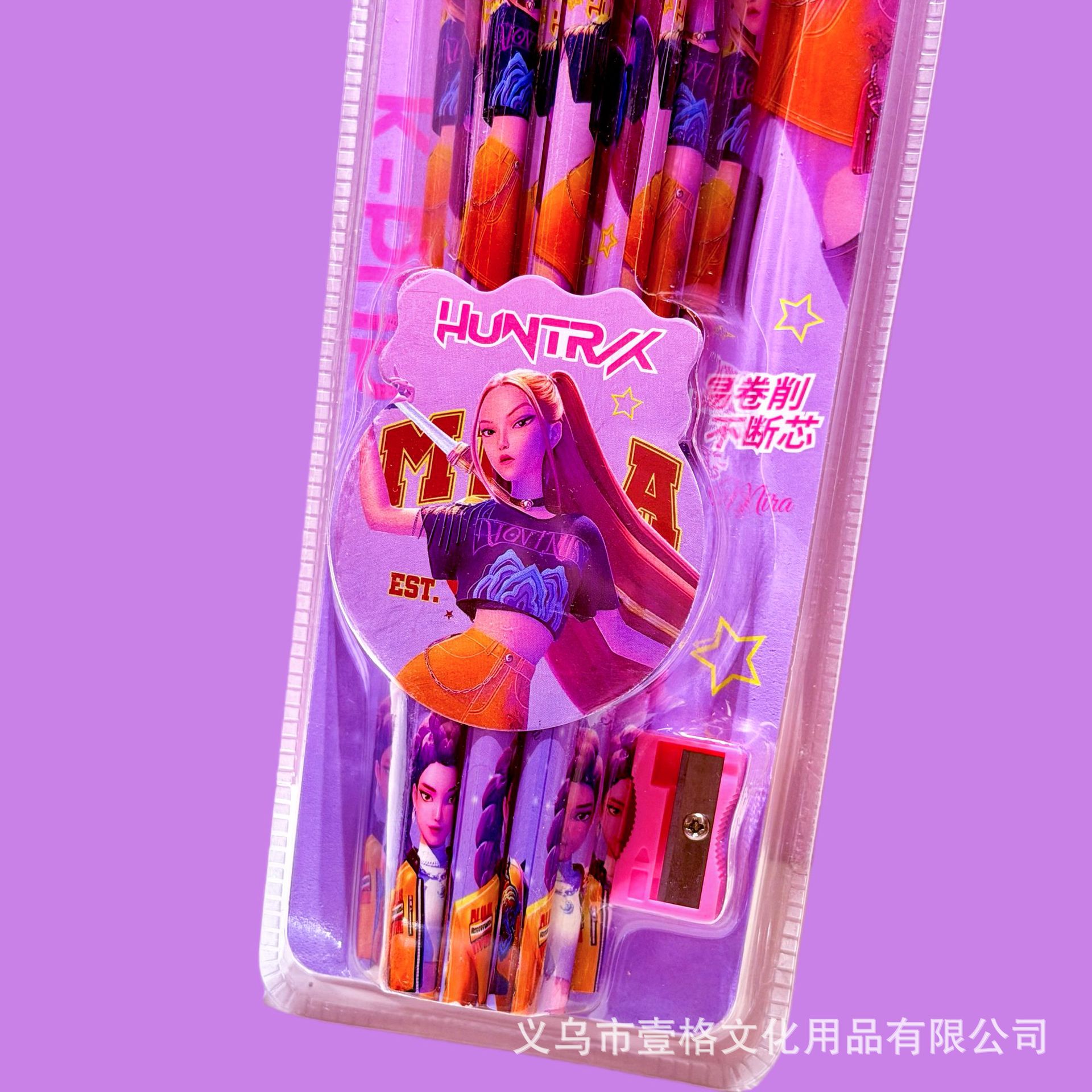 Caza de brujas gran cabeza de cuero juego de lápiz dibujos animados lindos K-POP varilla de madera de plomo continuo enrollamiento de lápiz para estudiantes