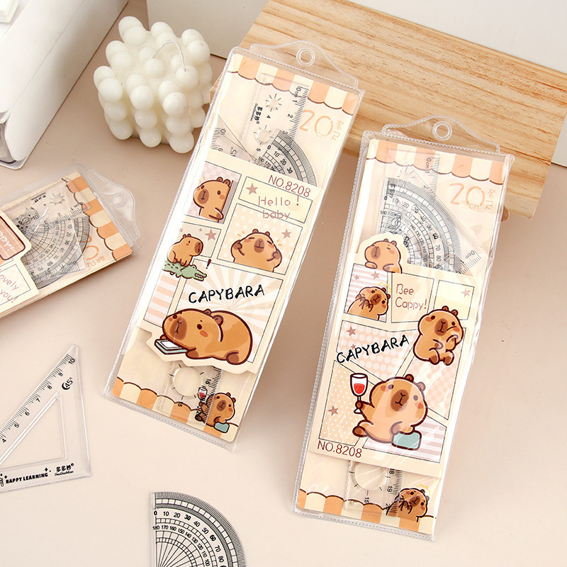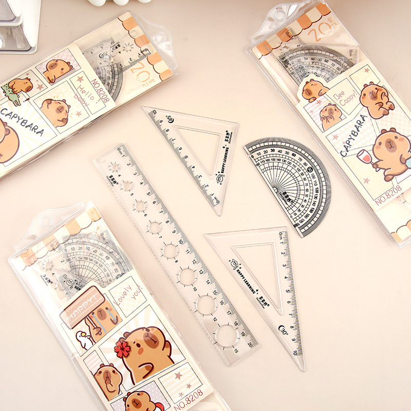 Kapibala Set Regla de tablero triangular de pony Regla Papelería multifuncional para estudiantes Herramientas de pintura Conjunto de reglas para exámenes
