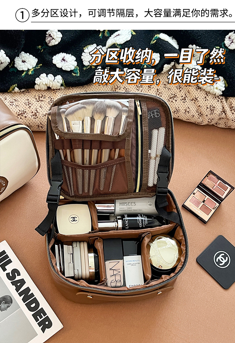 Bolsa de cosméticos bolsa de almacenamiento de cosméticos de partición de gran capacidad bolsa de lavado de viaje bolsa de almacenamiento de cepillo de maquillaje portátil impermeable para mujer
