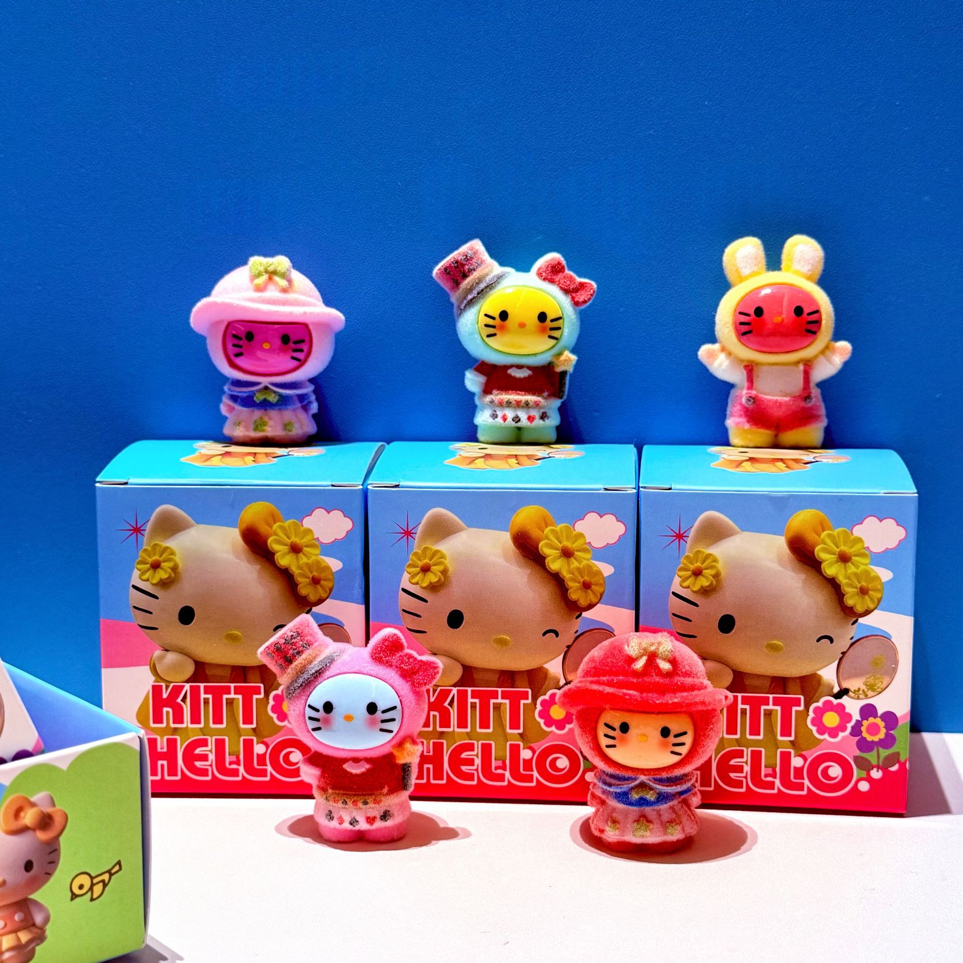Caja ciega de dibujos animados gato muñeca de resina floc floc de moda para jugar con decoraciones hechas a mano escritura al por mayor caja ciega papelería
