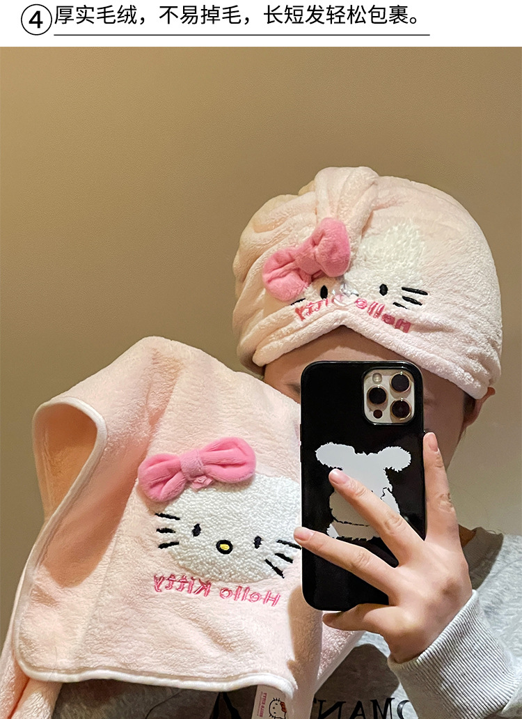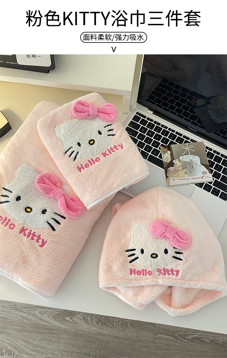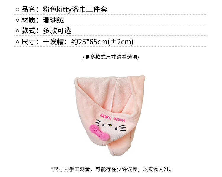 Cute toalla de baño para gatos KT toalla de cabello seco sombrero de tres piezas conjunto de absorción de agua rápida no se seca el cabello grueso se puede usar y envolver toalla de baño