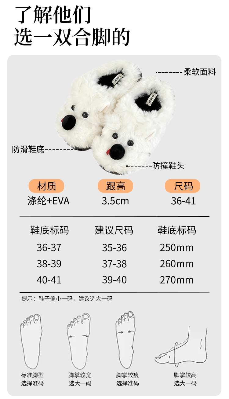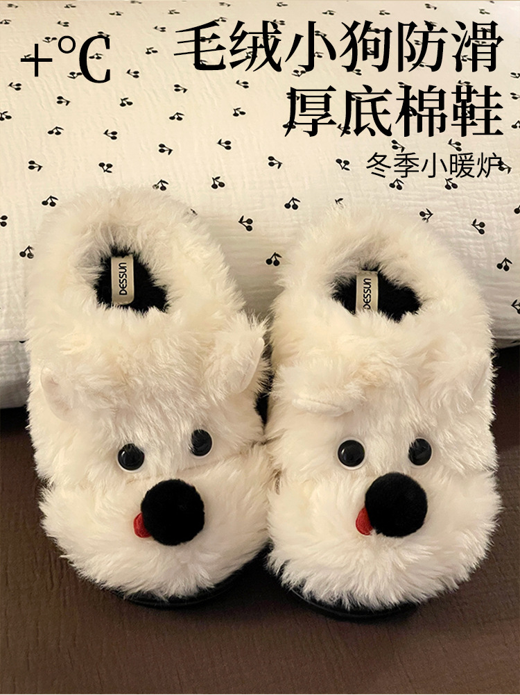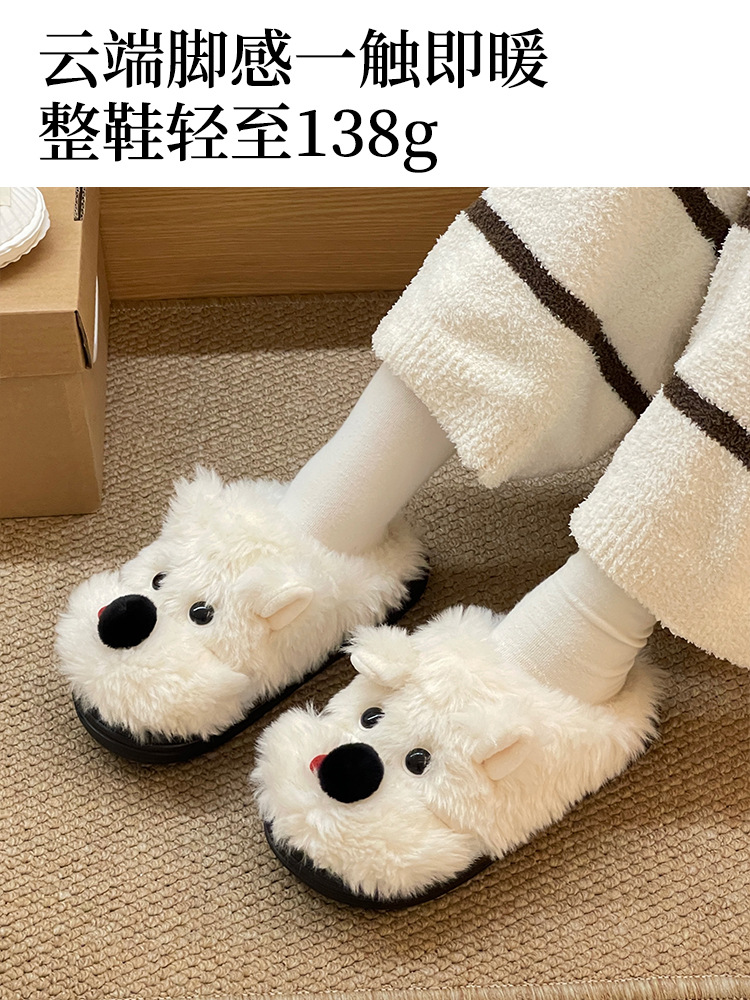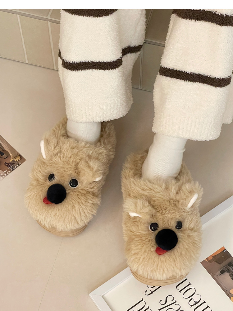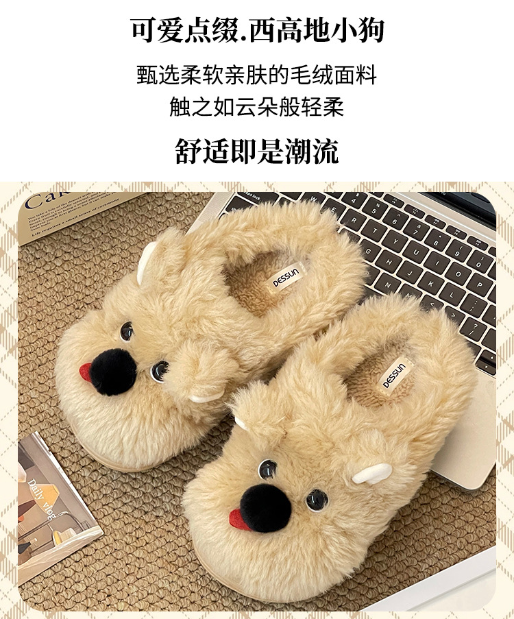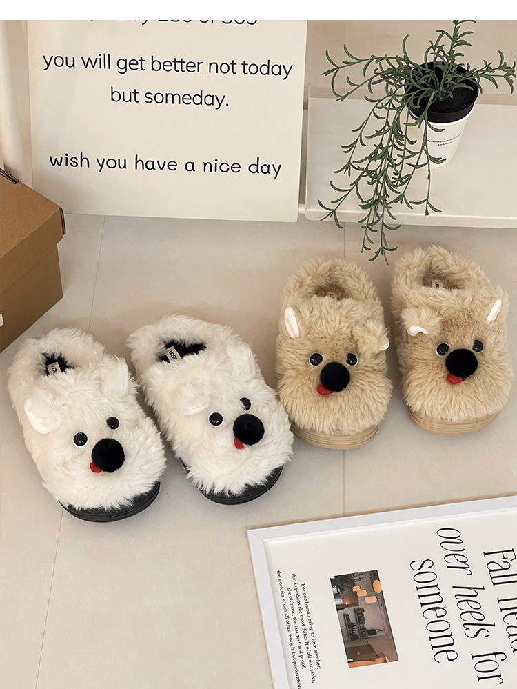 2025 otoño y invierno nuevo lindo perro de dibujos animados zapatillas de peluche para mujeres que piden mierda sensación casual antideslizante zapatillas de cabeza