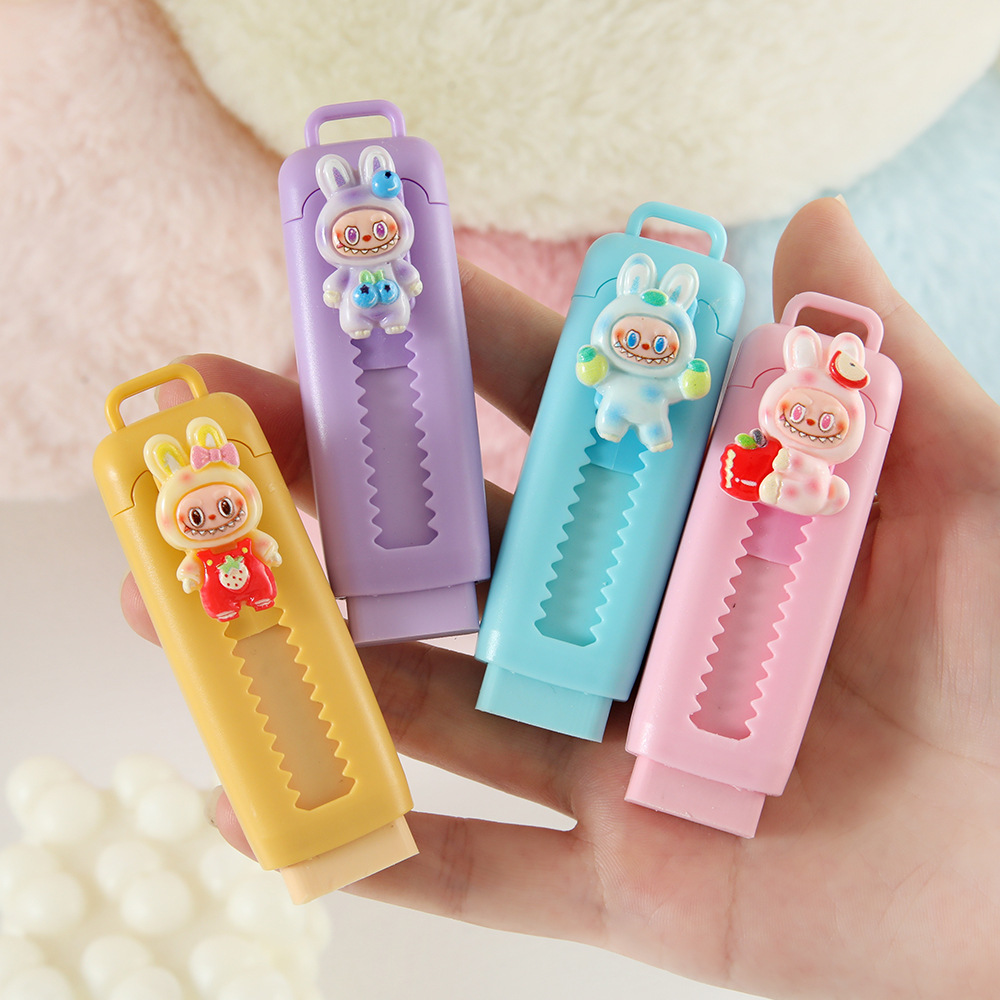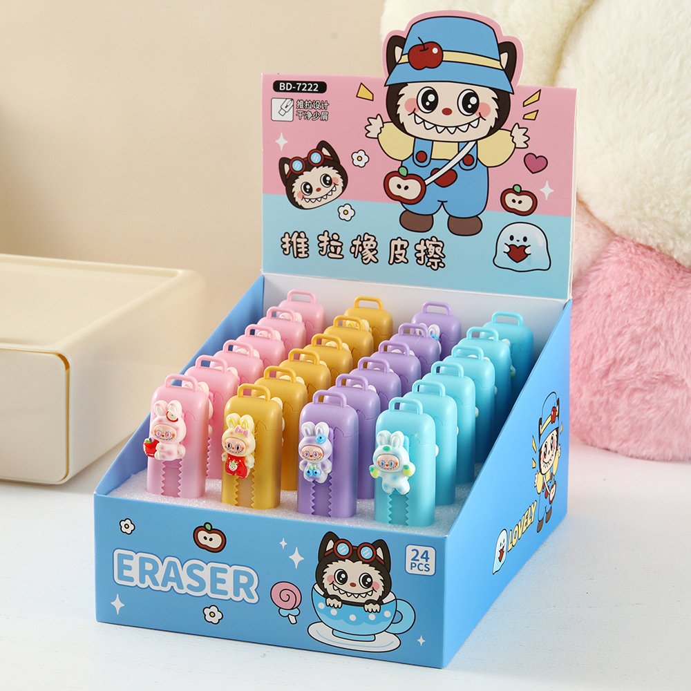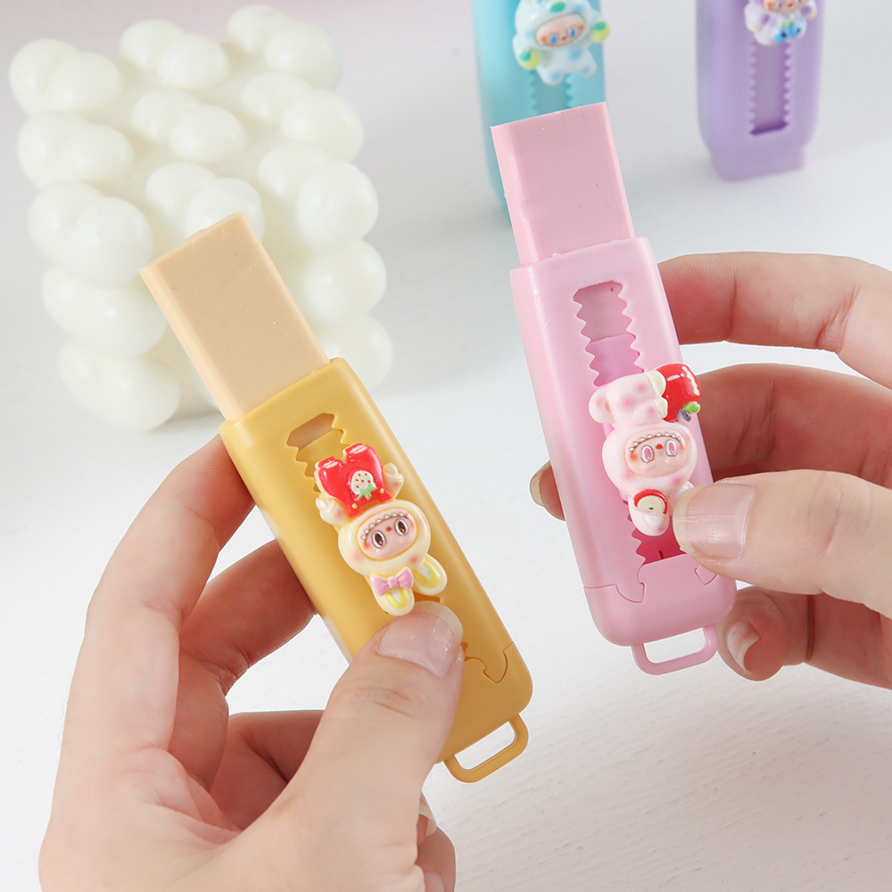 Caja de goma de goma de tirar de tela pequeña goma de goma de dibujos animados lindos estudiantes de escuela primaria núcleo intercambiable goma retráctil limpia menos residuos papelería