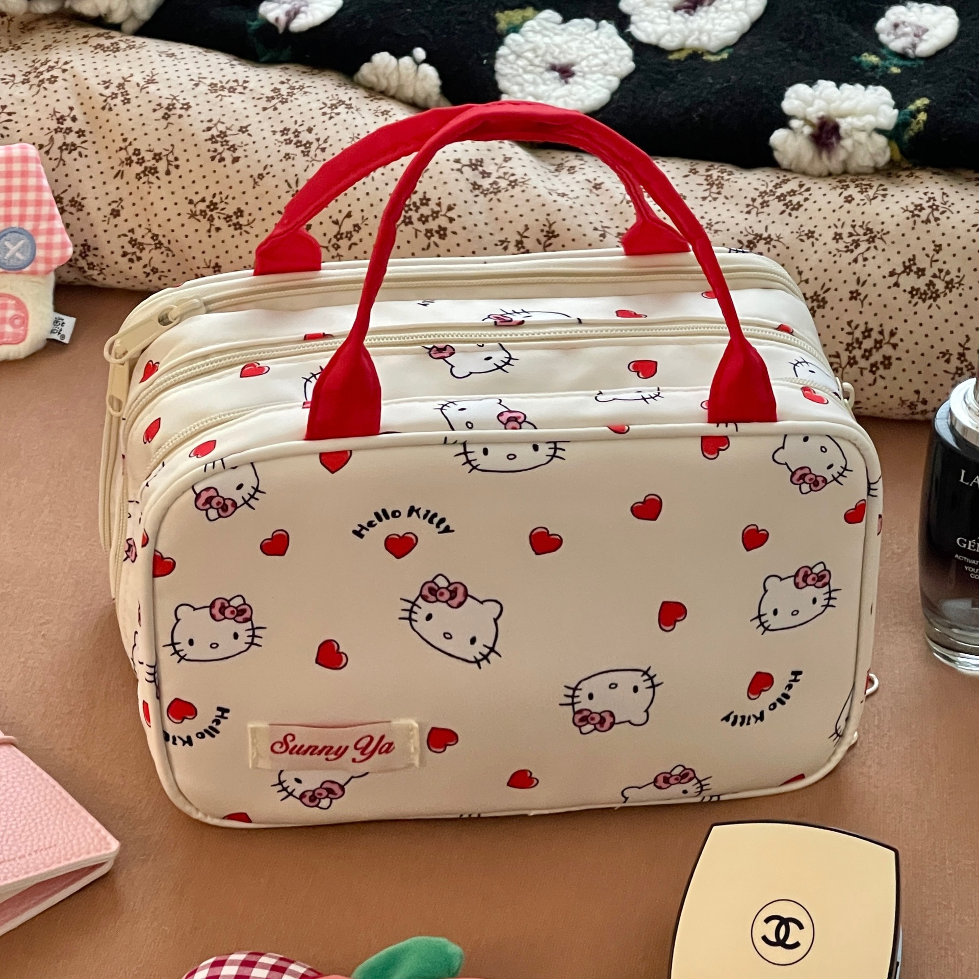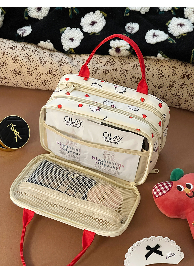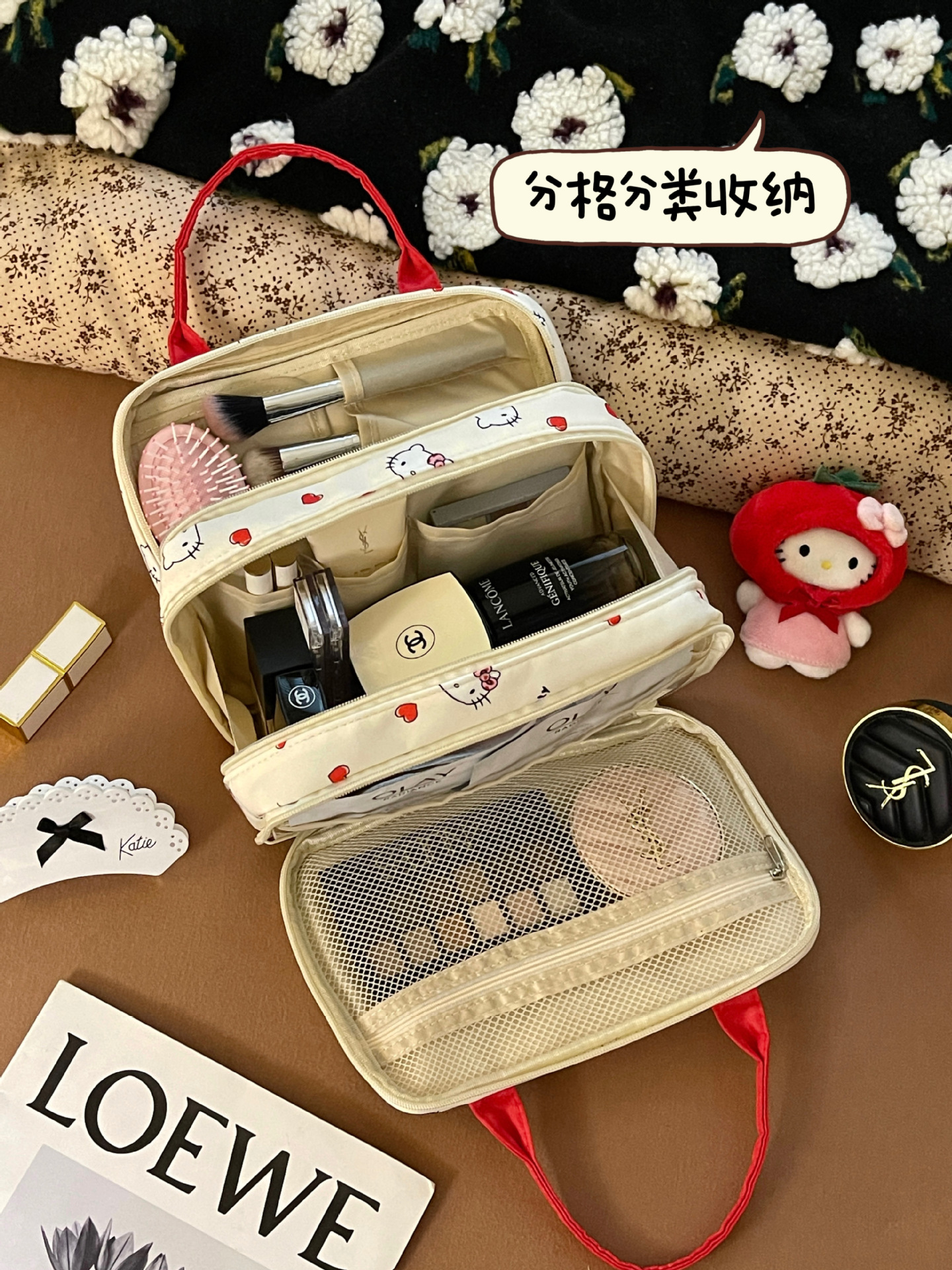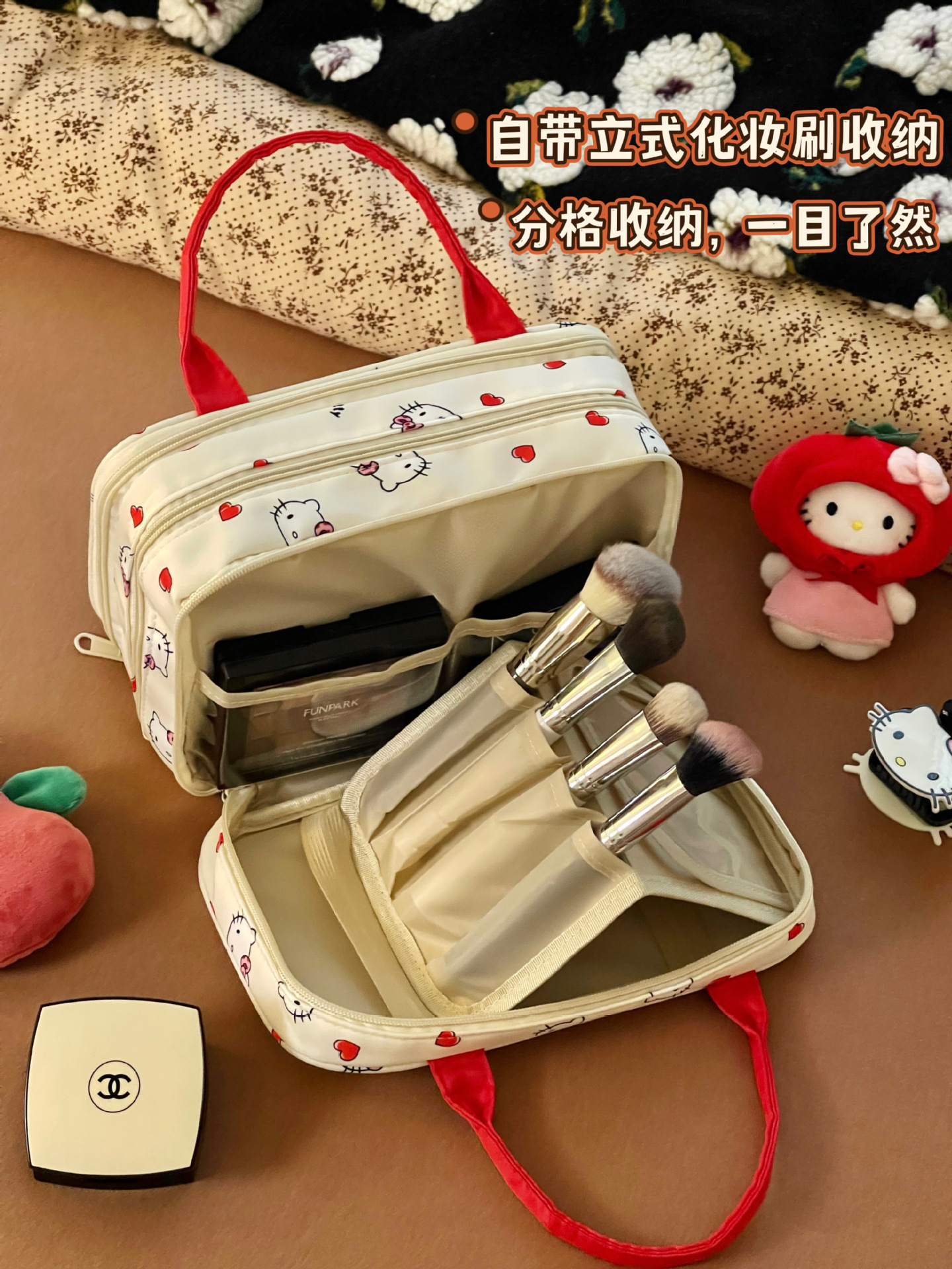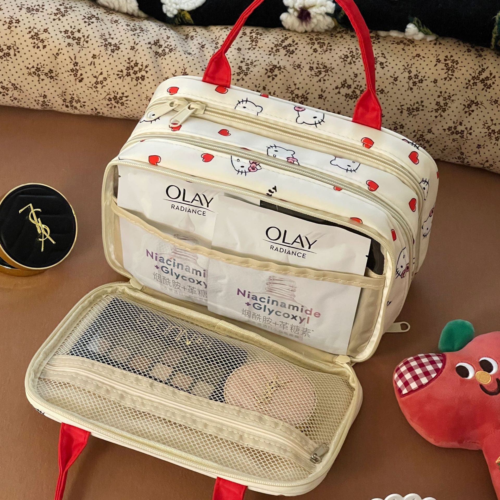 Nuevo lindo gato de tres capas bolsa de maquillaje de gran capacidad portátil almacenamiento de viaje portátil bolsa de lavado de partición portátil