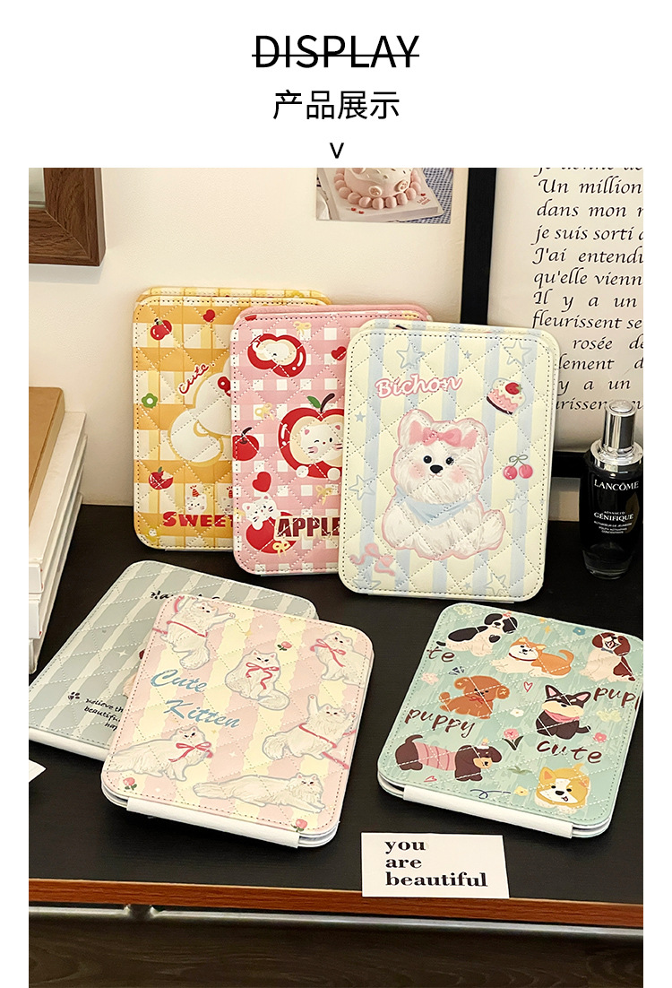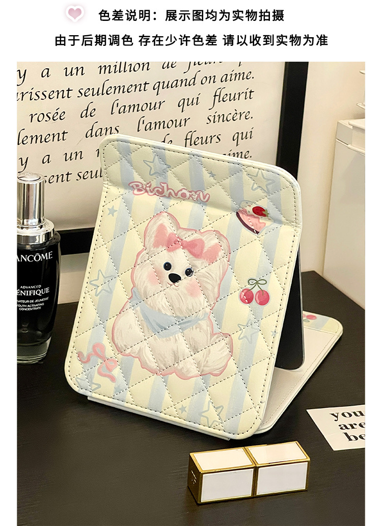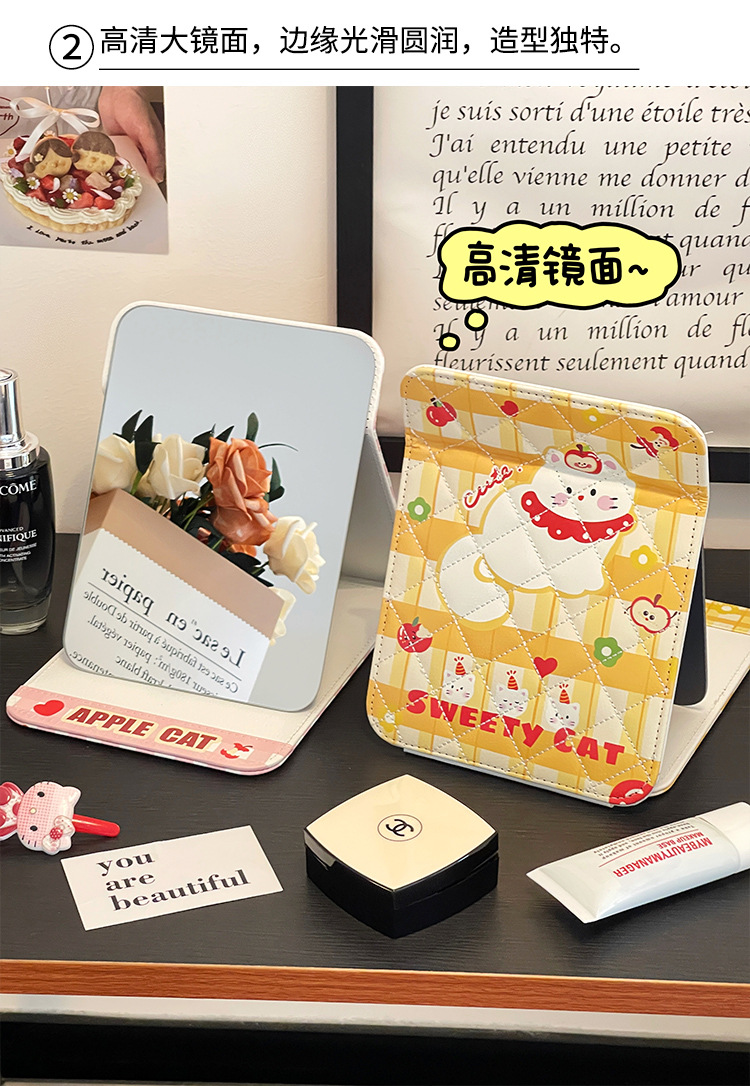 | Colores | Espejo plegable gatito amarillo,Espejo plegable Apple Cat,Espejo plegable de cachorro de dibujos animados,Tres espejos plegables para cachorros,Espejo plegable cereza perrito,Espejo plegable de gato a rayas |