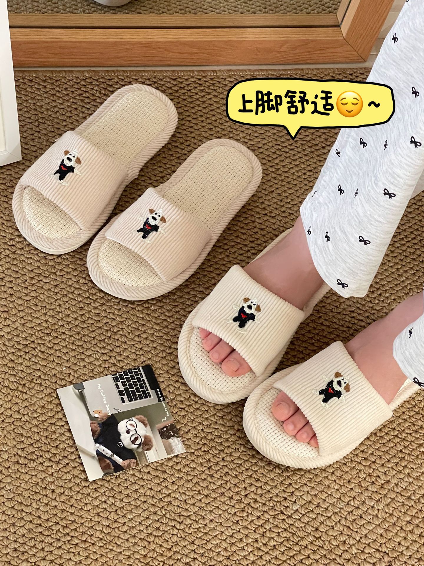 2025 nuevo lino lindas zapatillas de cuatro estaciones primavera y otoño damas domésticas sudor absorción doméstica algodón antideslizante lino silencioso