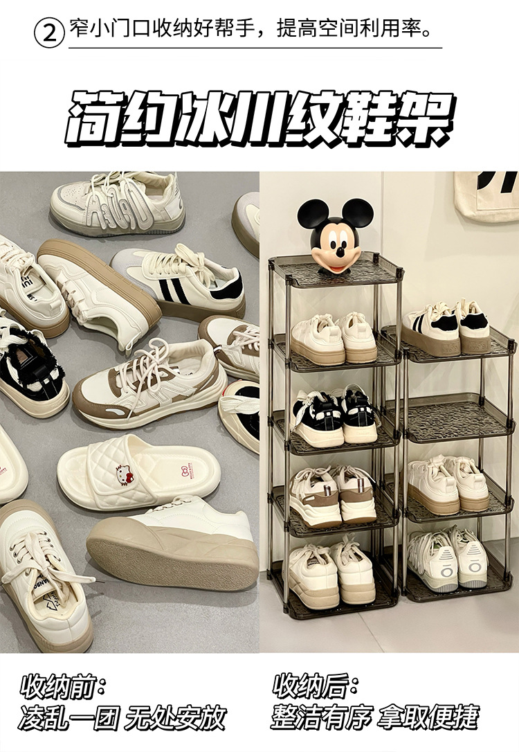 Estante de zapatos de patrón de glaciar multicapa simple puerta doméstica económica a prueba de polvo armario de zapatos transparente que ahorra espacio de almacenamiento estante de almacenamiento