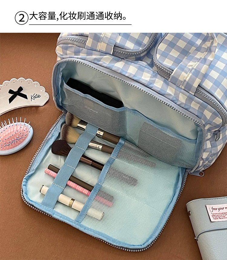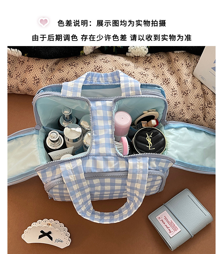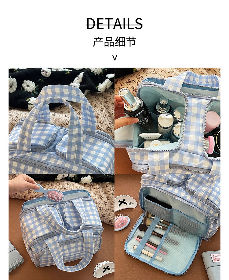 | Colores | Bolsa cosmética de partición marrón [gran capacidad],Bolsa de cosméticos de partición de celosía azul [gran capacidad] |