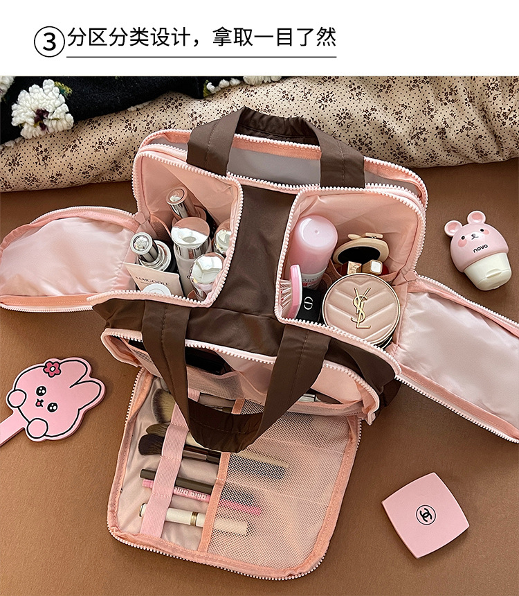 2025 nueva bolsa de cosméticos de partición de gran capacidad de apertura de doble ancho, bolsa de almacenamiento de lavado portátil de viaje esponjosa de alta calidad