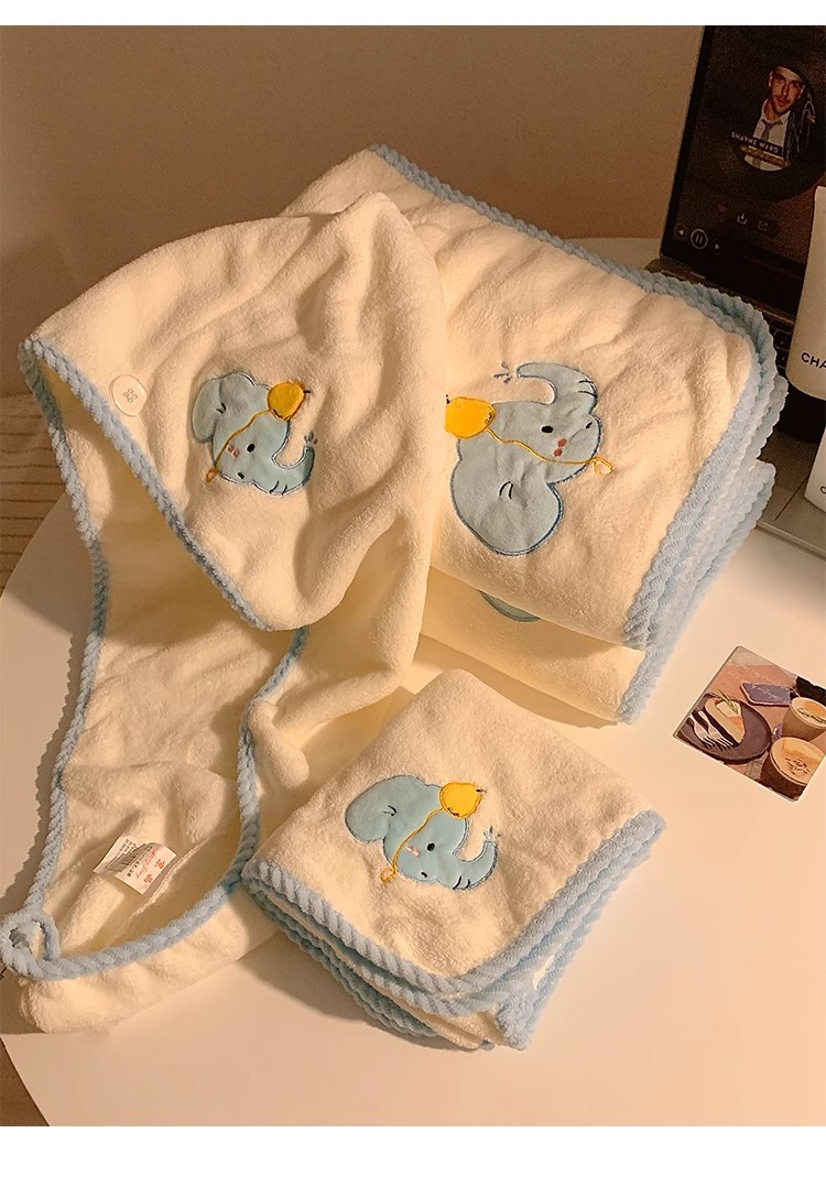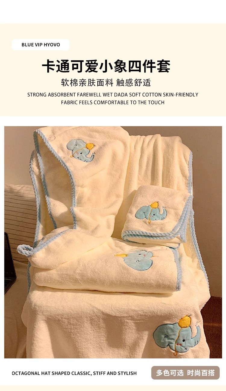 | Colores | Vestido de baño de elefante azul,Toalla de baño de elefante azul,Toalla de elefante azul,Gorro de pelo seco elefante azul |
