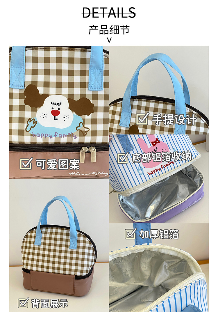 | Colores | Bolsa de lonchera de doble capa de oso de dibujos animados,Bolso de perrito rizado doble lonchera,Bolsa de lonchera de doble capa de gato a rayas,Bolsa de lonchera doble de conejo rosa |