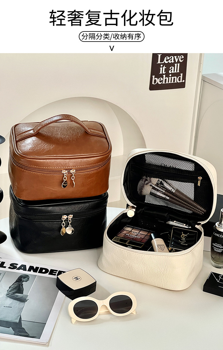 | Colores | Bolsa de cosméticos de partición blanca-vintage,Bolsa de cosméticos de partición negra-vintage,Bolsa de cosméticos de partición retro caqui |