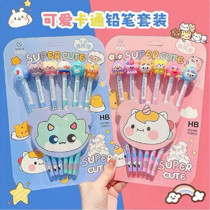 Nuevos productos de dibujos animados borrador lápiz conjunto HB pequeño animal forma de goma estudiantes pequeños regalos pencil para jardín de infantes