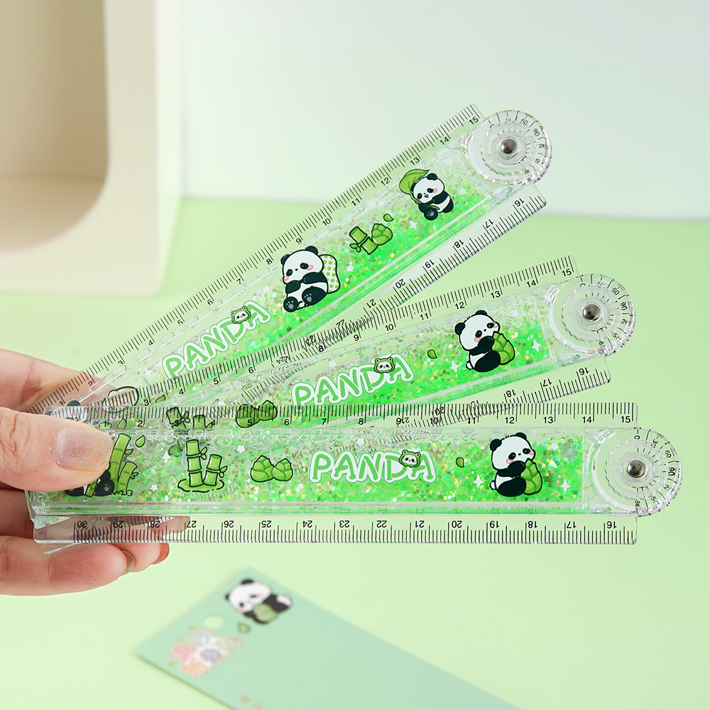 Cute panda arena flotante regla plegable 30cm alto valor nominal estudiante regla de reducción de presión para el examen de papelería de dibujos animados regla recta