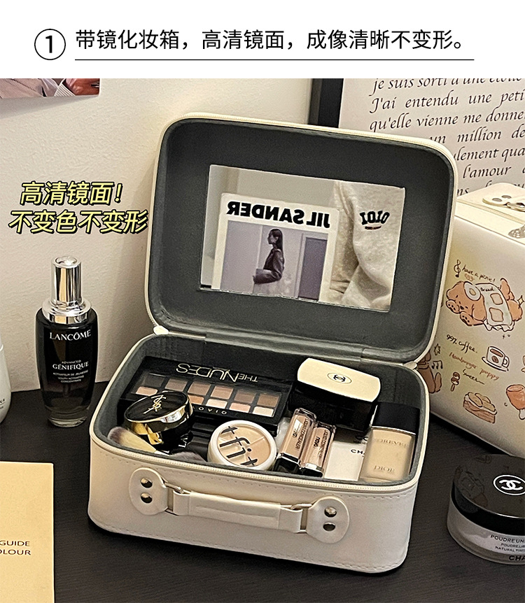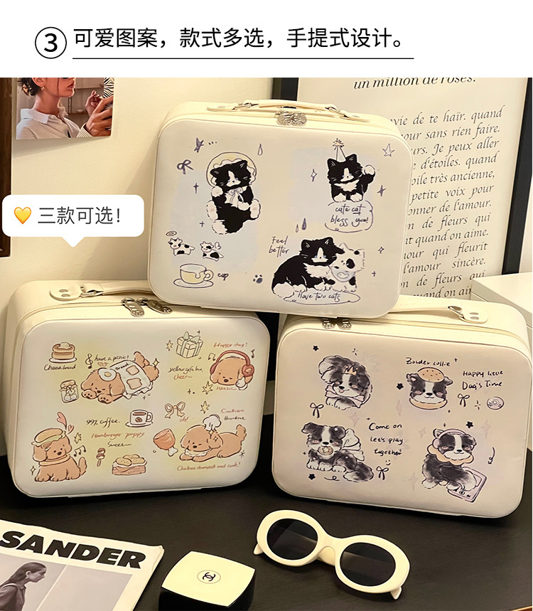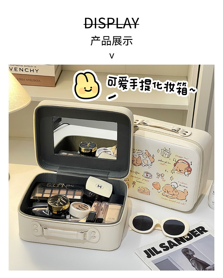 Bolso cosmético portátil lindo original de gran capacidad nuevo portátil con espejo bolsa de lavado impermeable caja de almacenamiento de cosméticos