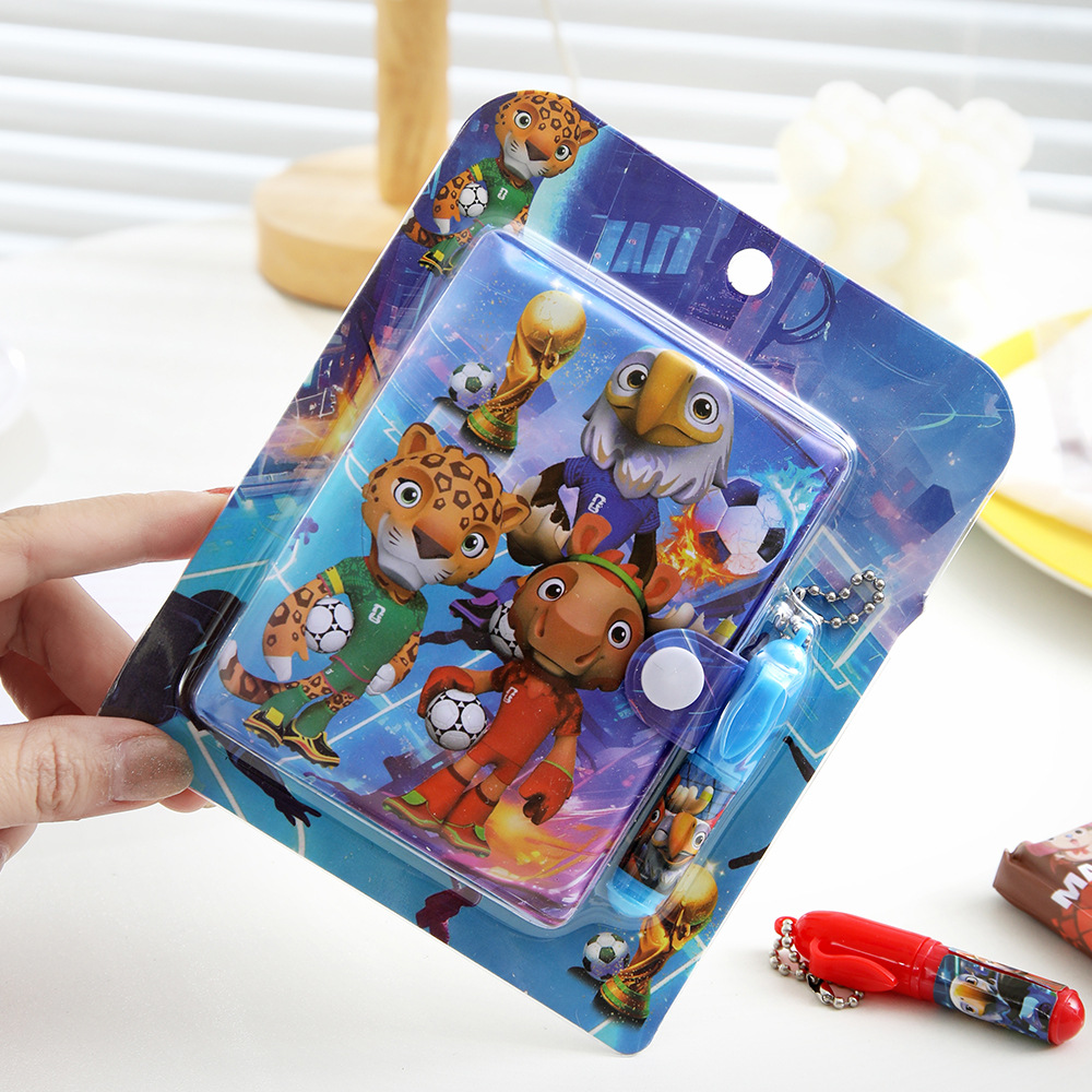 Copa del mundo de fútbol pu cuaderno con bolígrafo dibujos animados mascota diario de comercio exterior estudiantes de papelería