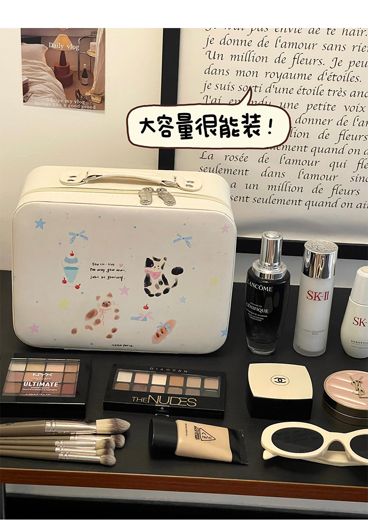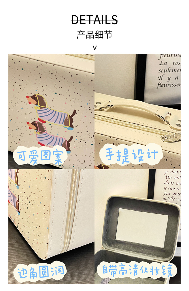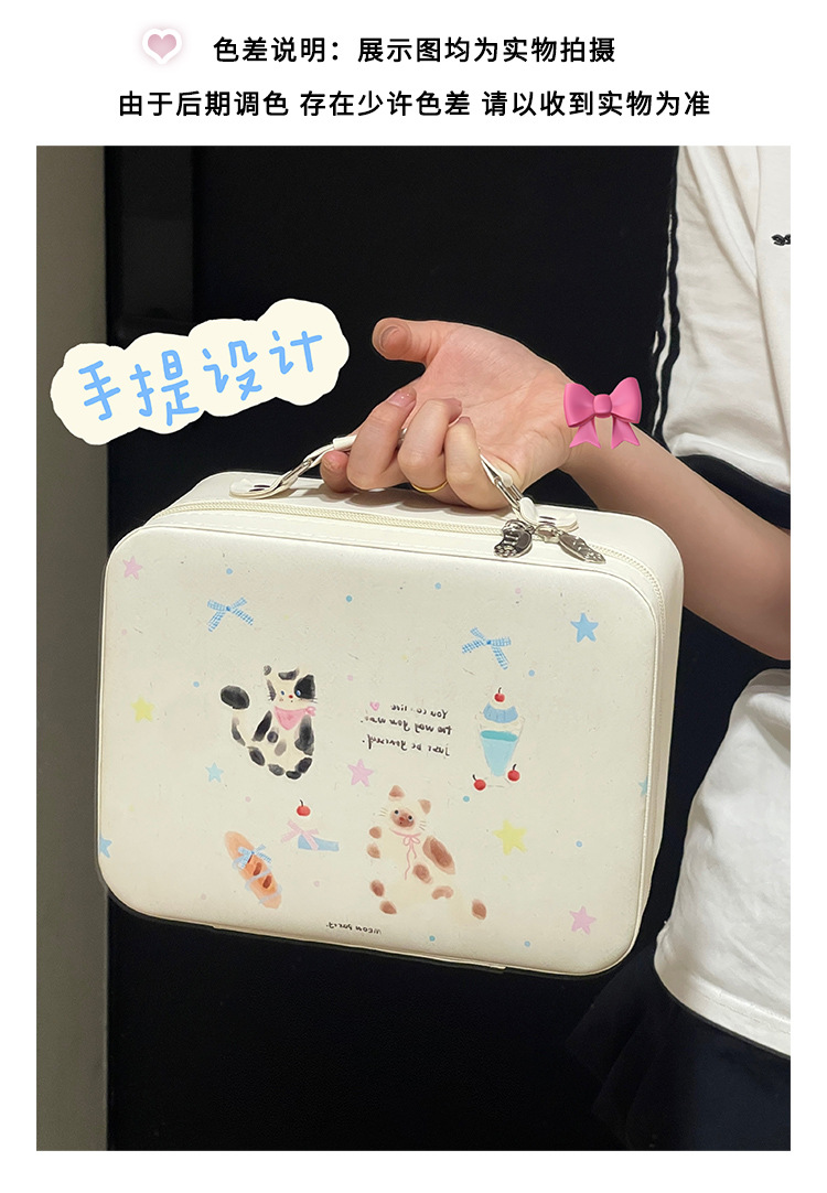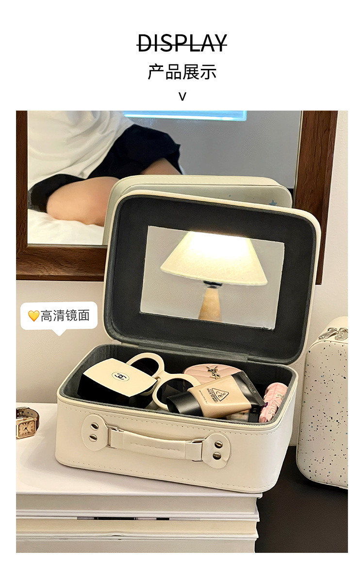 Bolsa de cosméticos original con espejo, caja de cosméticos portátil portátil de gran capacidad, bolsa de almacenamiento de viaje linda, bolsa de lavado impermeable