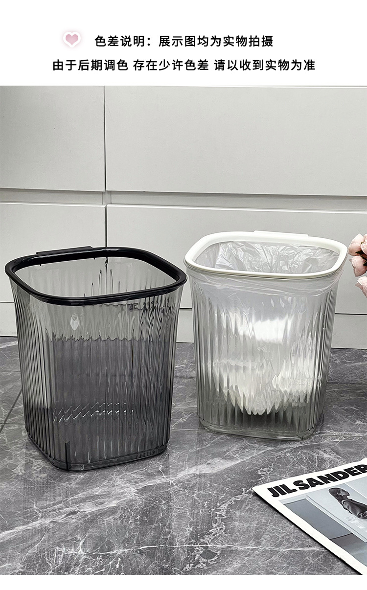 Casa transparente de oficina basura de alto valor cuadrada estriada gruesa gran cocina sala de estar cesto de baño