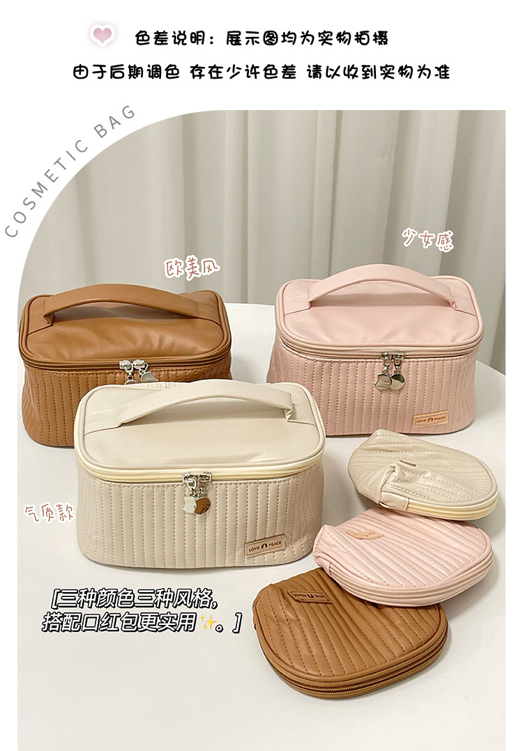 Nueva bolsa de maquillaje de pastel portátil portátil nicho de viaje de alto valor facial adorable bolsa de almacenamiento de cosméticos para productos de cuidado de la piel