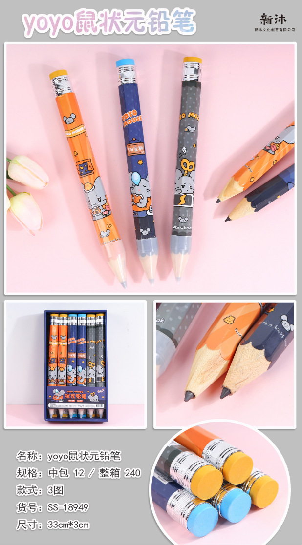 Nuevos productos yoyo ratón en línea lápiz grande encantador lápiz de dibujos animados lápiz creativo lápiz gigante super grande lápiz