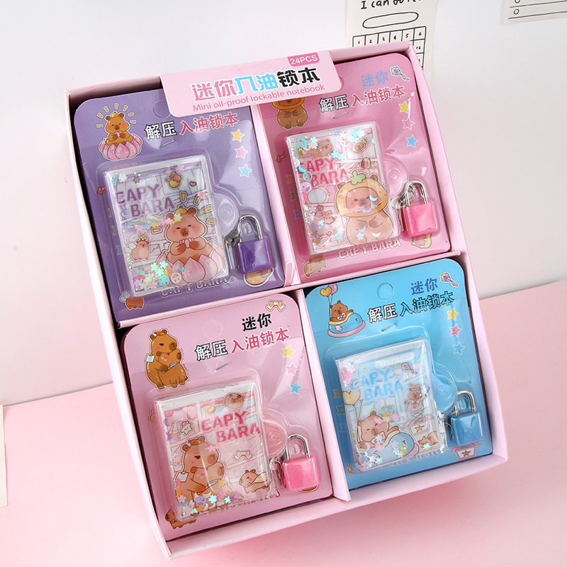 Capu conejillo de indias mini en el aceite con bloqueo conjunto de estudiantes despresionar en el aceite pellizco pellizco cuaderno de línea horizontal