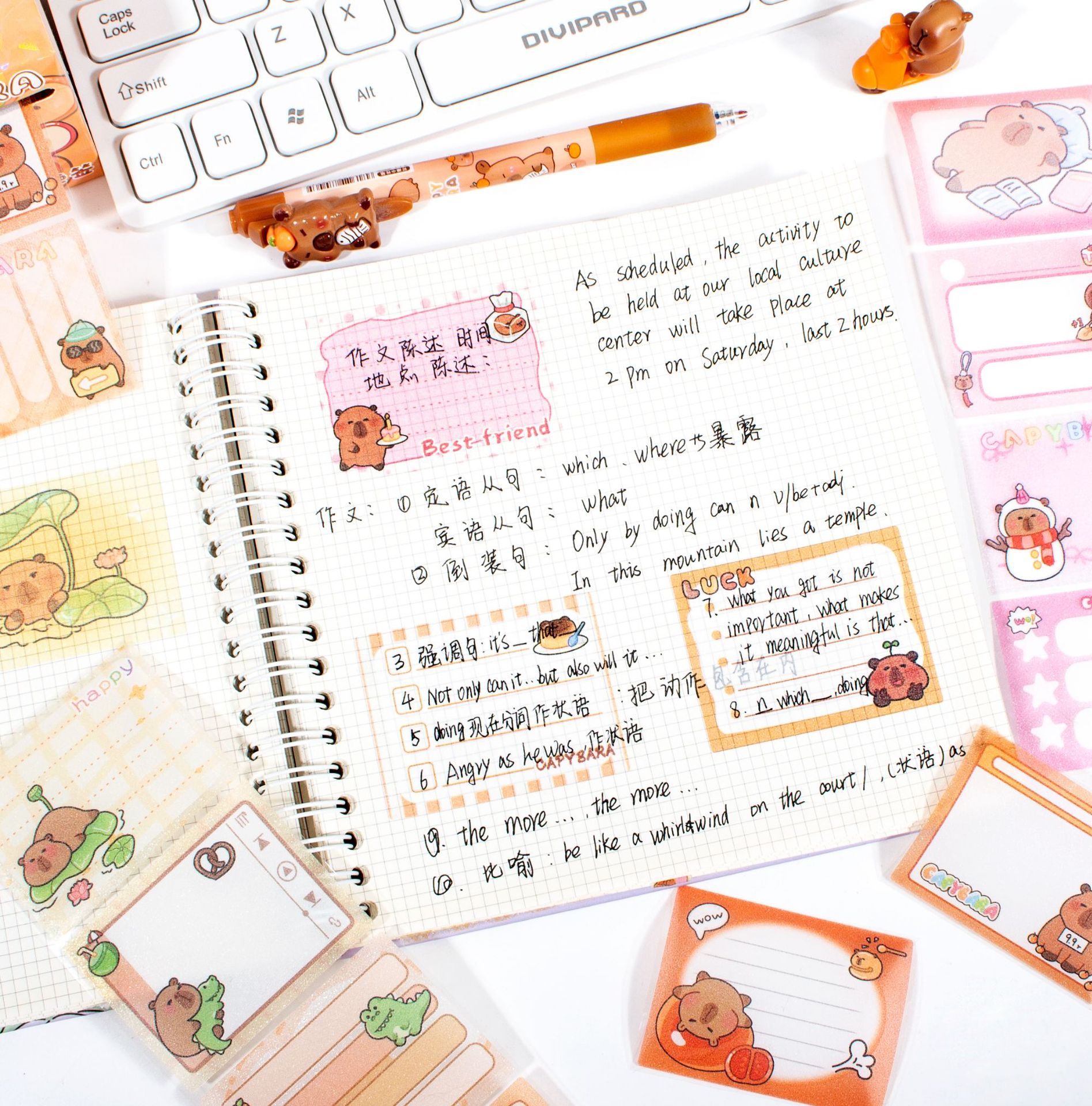 Papelería de aprendizaje de papelería para estudiantes con pegatinas de notas de cristal brillante de cerdo gloroso