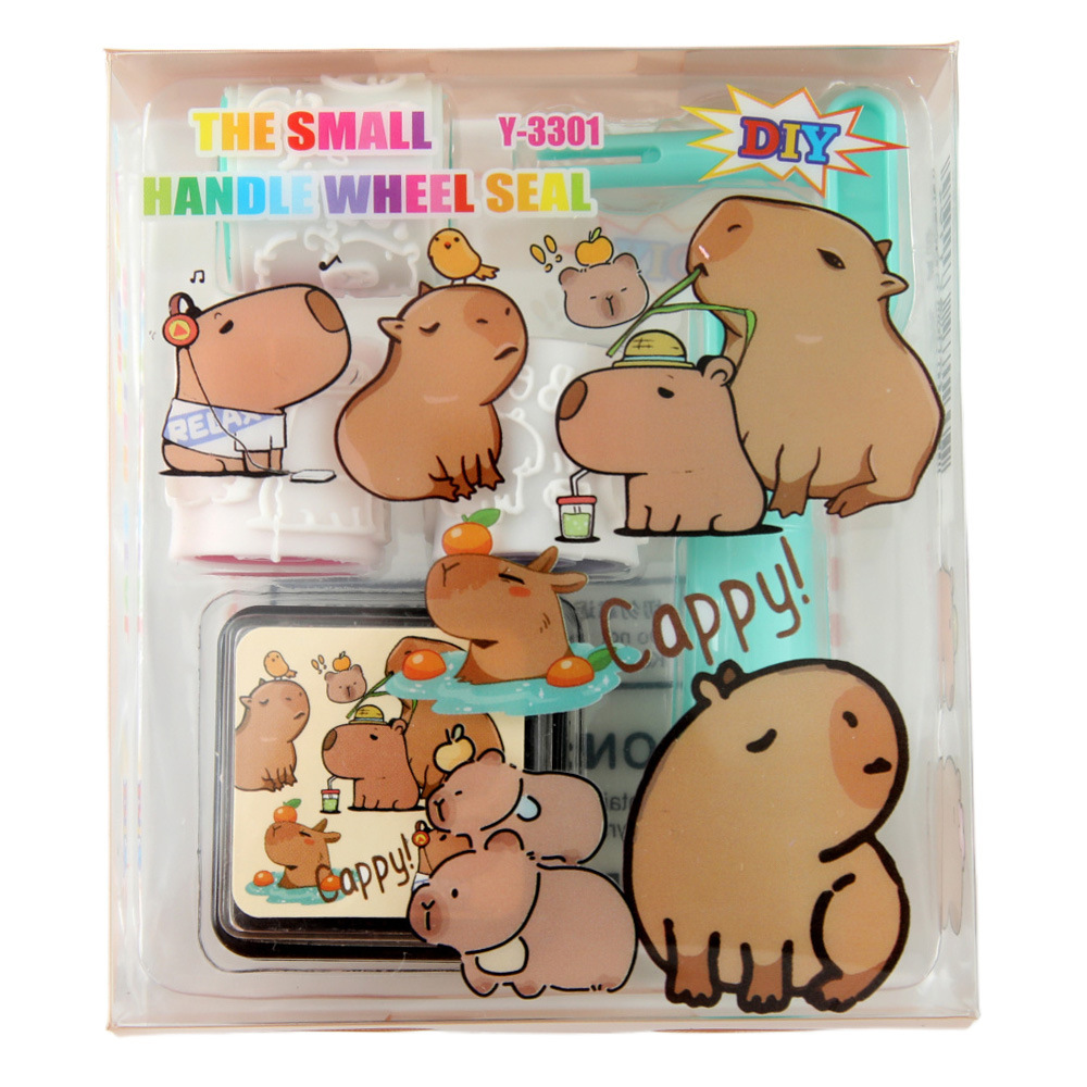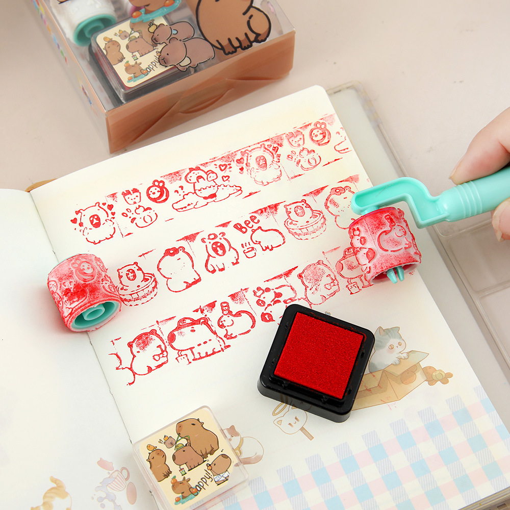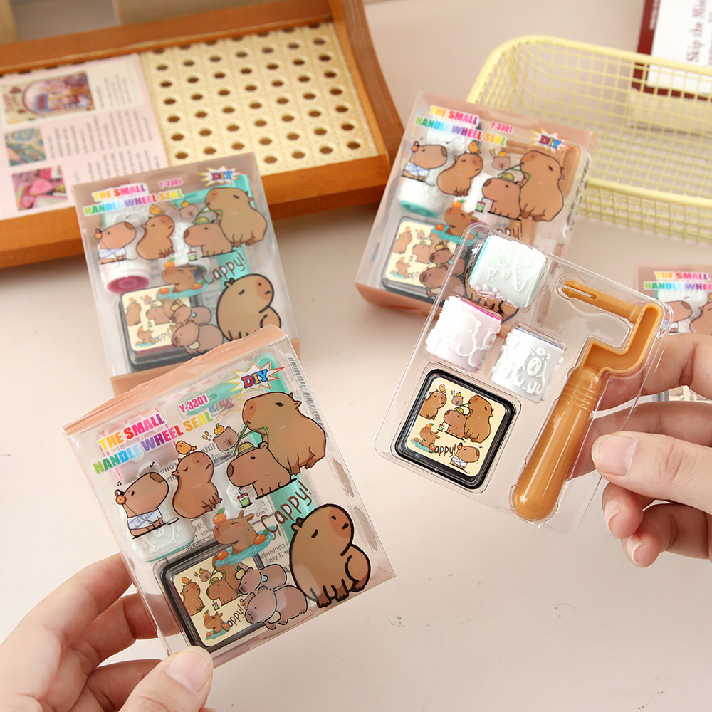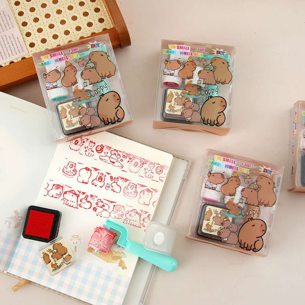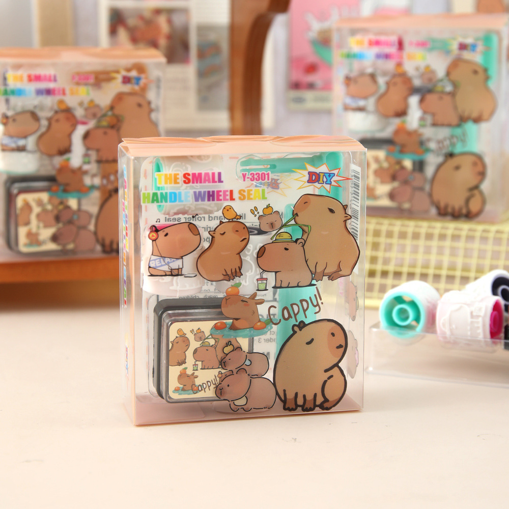 Capibara rodillos de juguetes de dibujos animados lindos 4 en 1 sello conjunto de premios para estudiantes de jardín de infantes