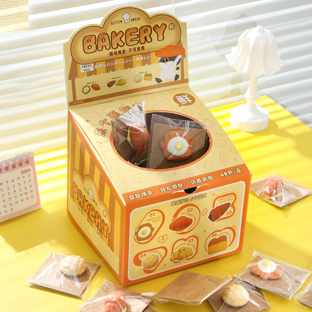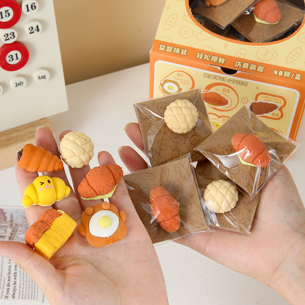Nuevos productos Yuanqi desayuno simulación de alimentos juegan borracha de goma de papelería de estudiantes limpieza borracha de goma de ensamblaje inteligente