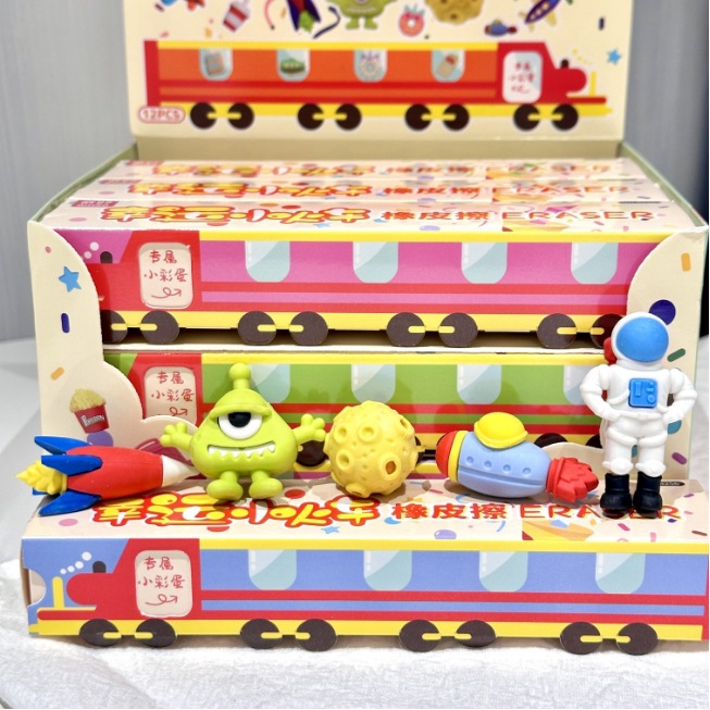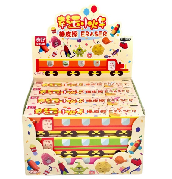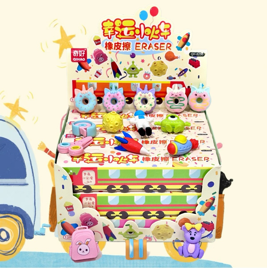 Lucky Train Eraser Set lindo juguete de simulación divertida forma Eraser caja ciega estudiantes papelería