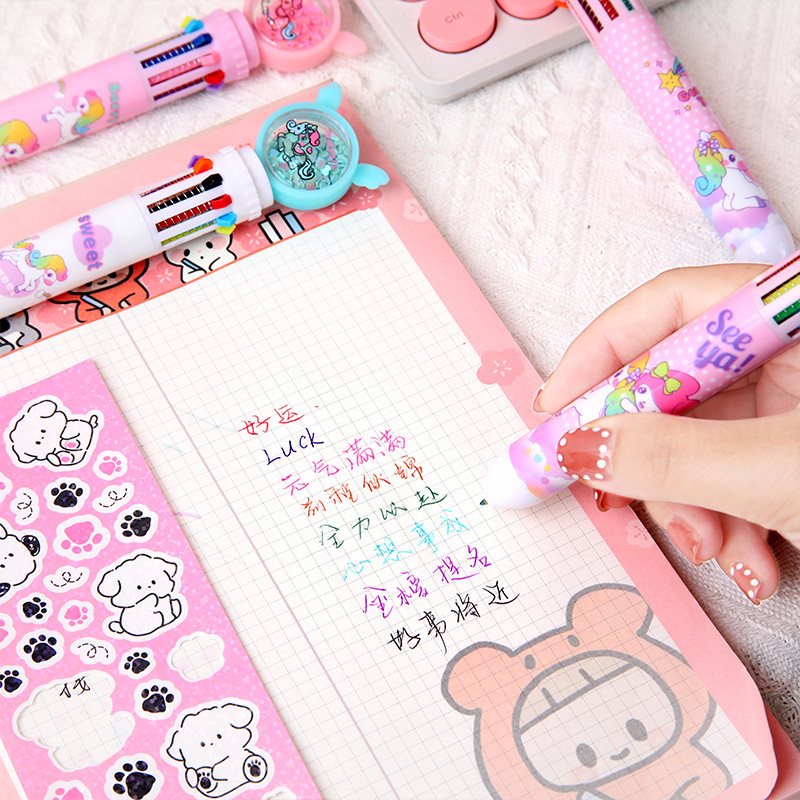 Cute lápiz de bolas de diez colores de dibujos animados de alto valor visual de lápiz marcador de notas de aprendizaje cultural de estudiantes lápiz