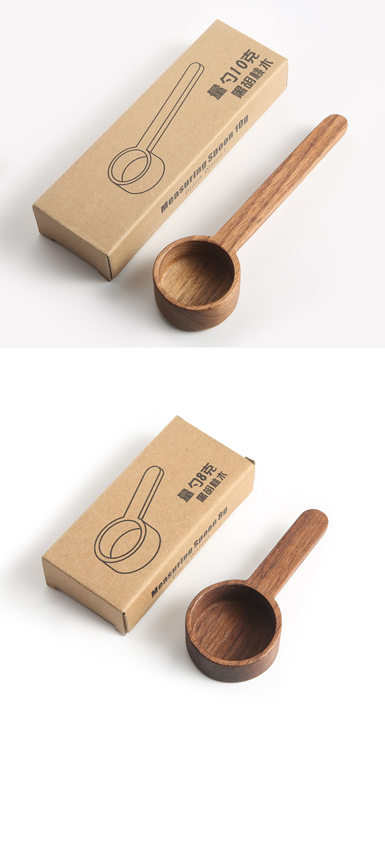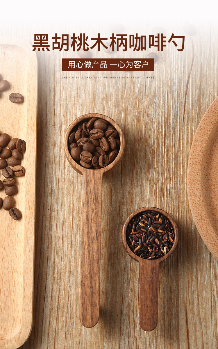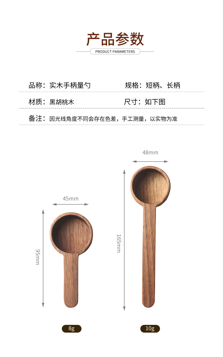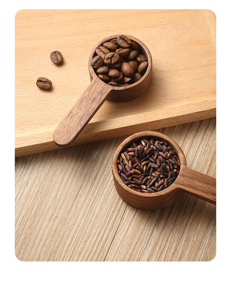 Cuchara de café de nogal para medir y almacenar gramos, cuchara medidora de madera de haya, cuchara de madera maciza de 8g 10g, cuchara de madera hecha a mano para uso comercial.