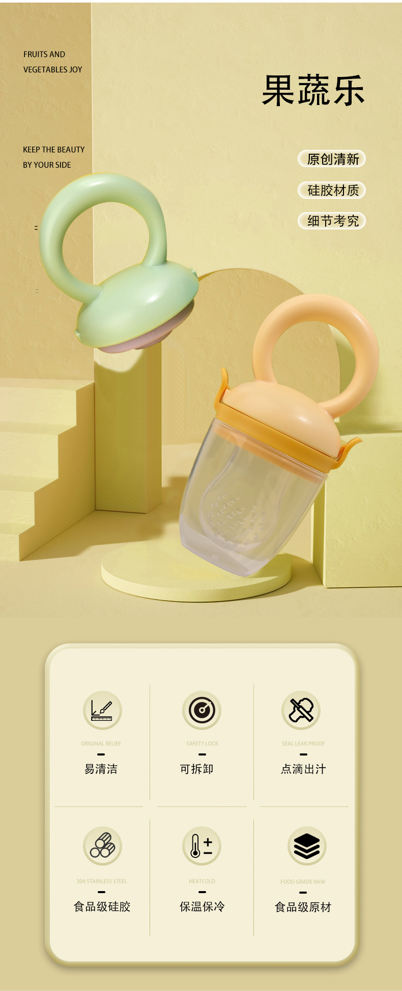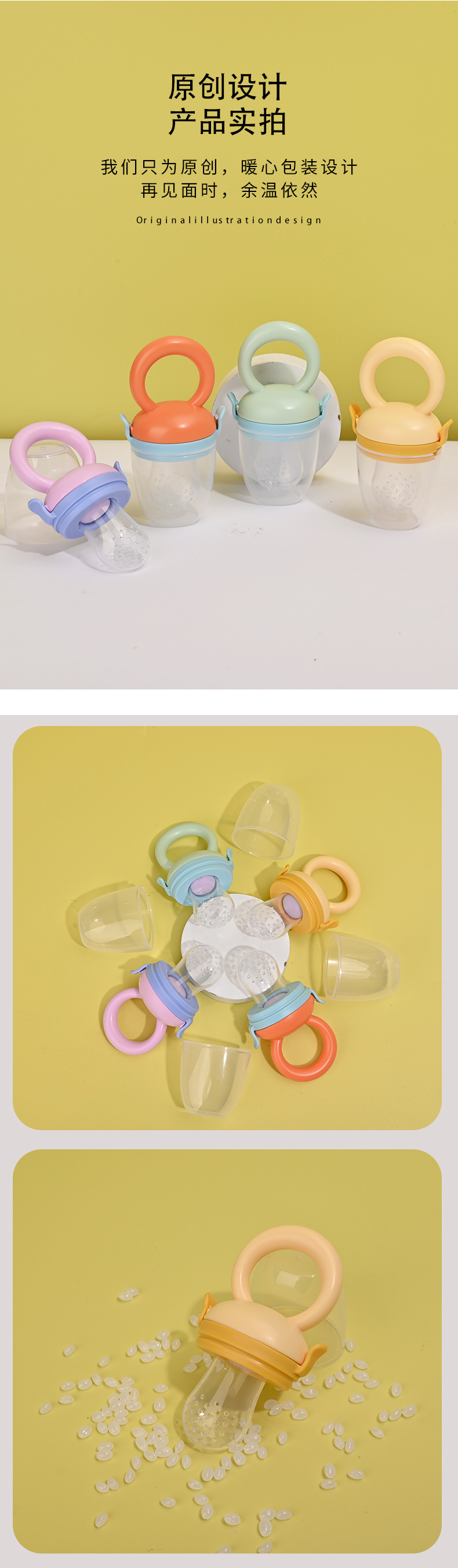 Bebé frutas y verduras bebé fruta suplemento alimenticio mordedura mordida bolsa de malla de silicona recién nacido chupete al por mayor