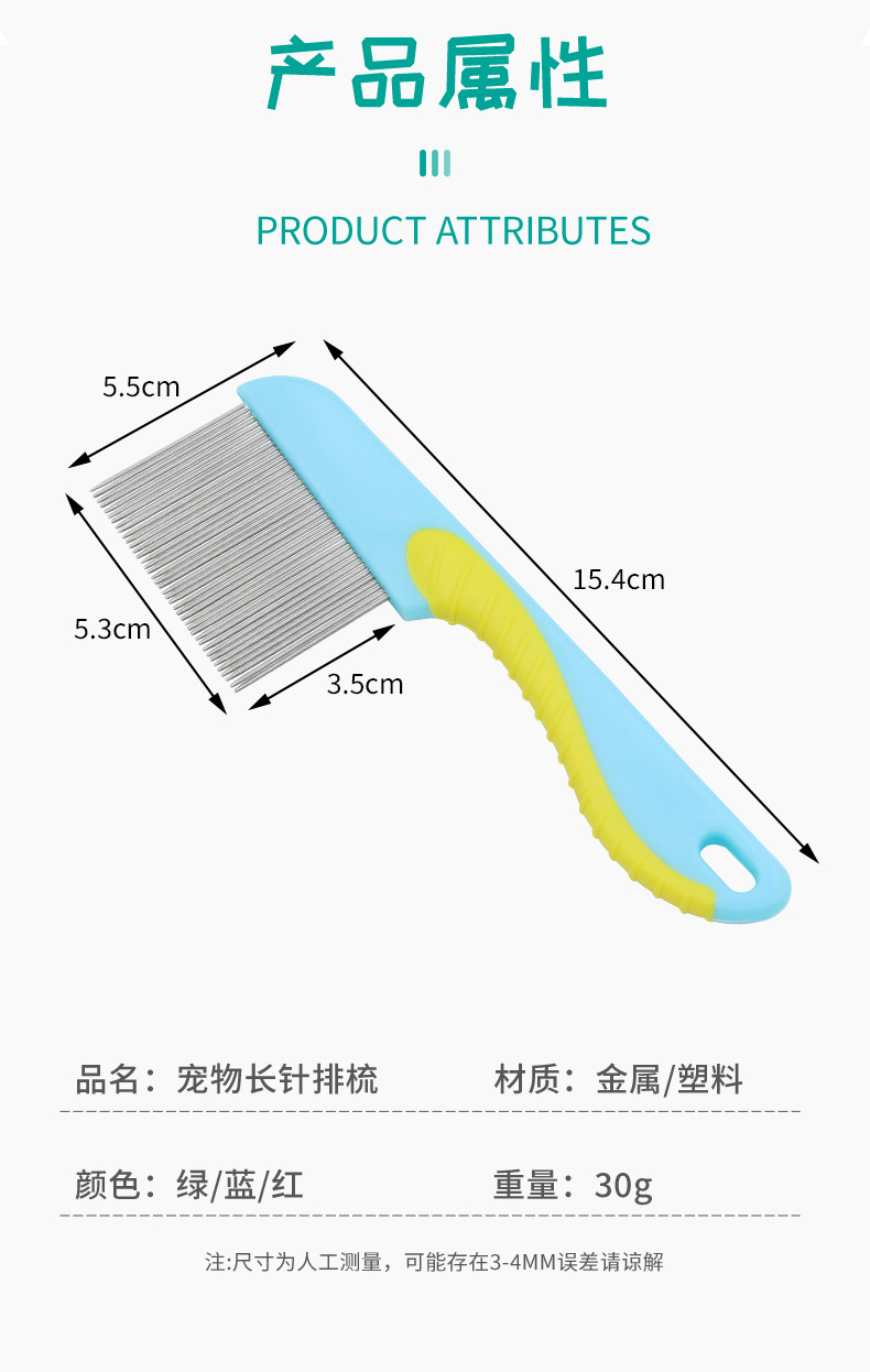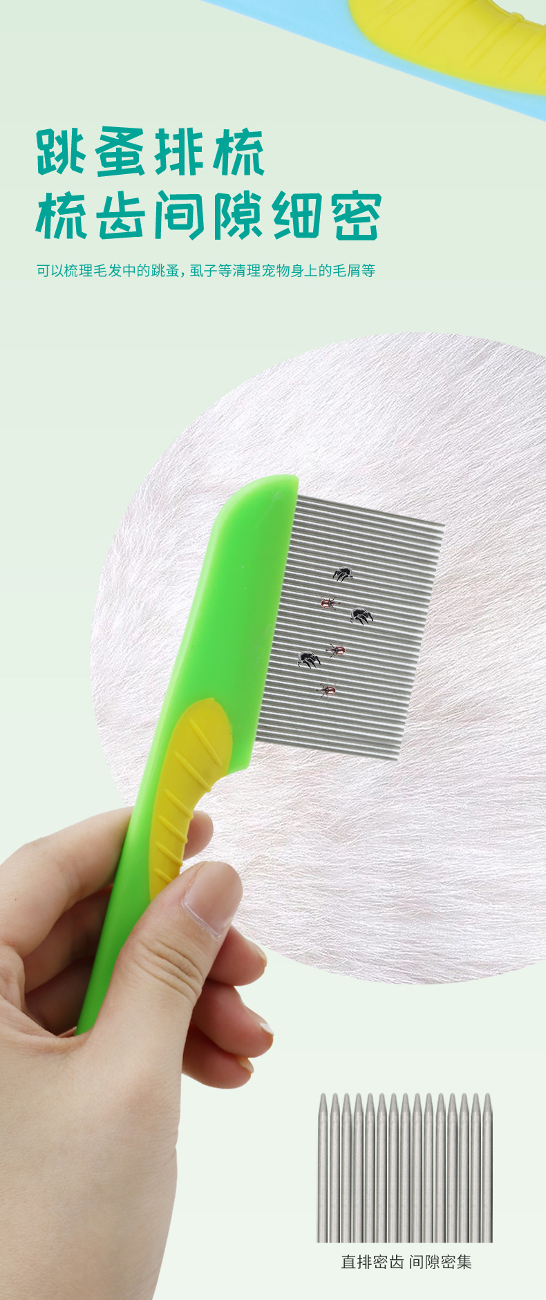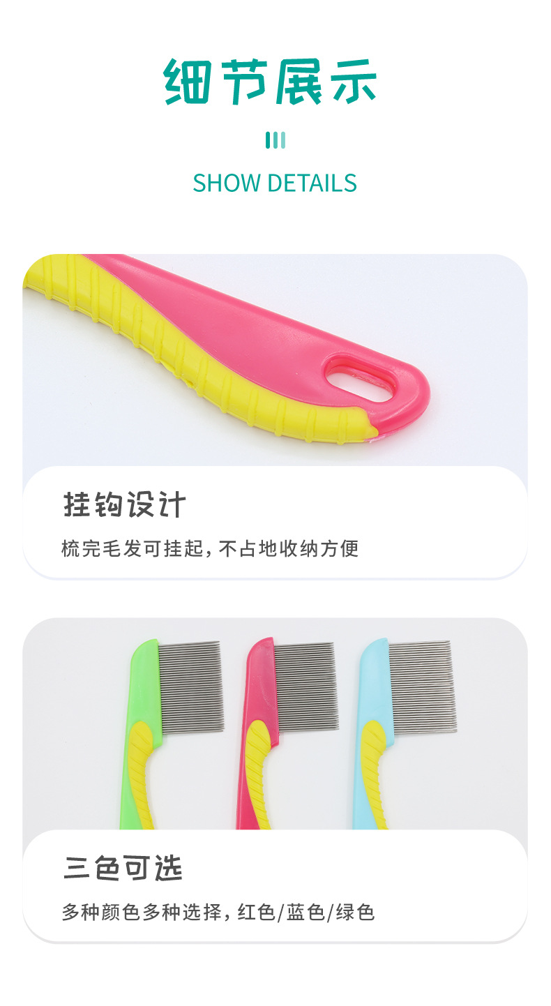 Perro y gato al por mayor con pulgas de acero inoxidable huevos de insectos peines de rejilla de mascotas peines de piojos peines de nudos abiertos peines de hipocabalos de belleza