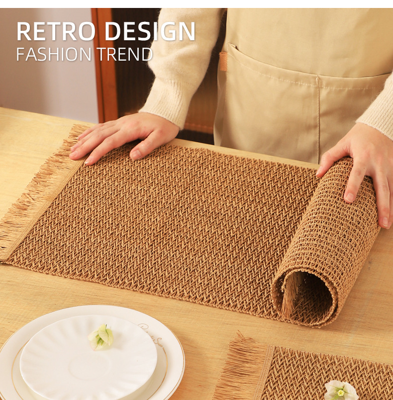 2025 nuevo papel tejido almohadilla aislante térmico almohadilla decoración de mesa de té estilo retro chino se puede enviar