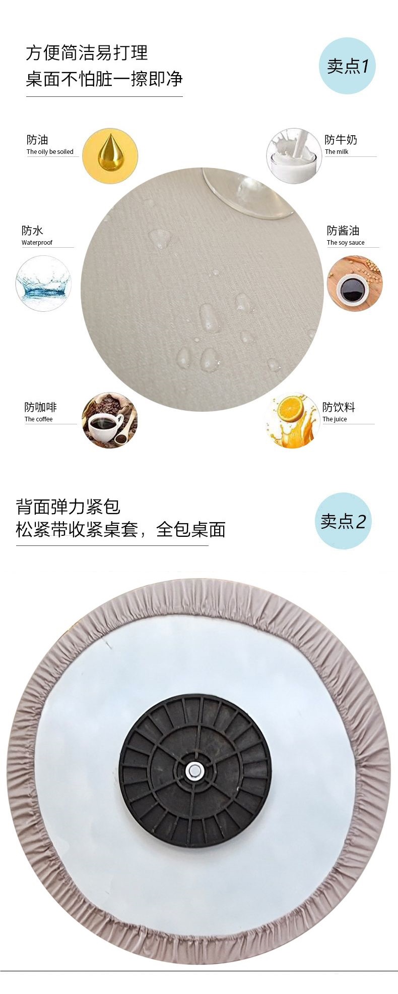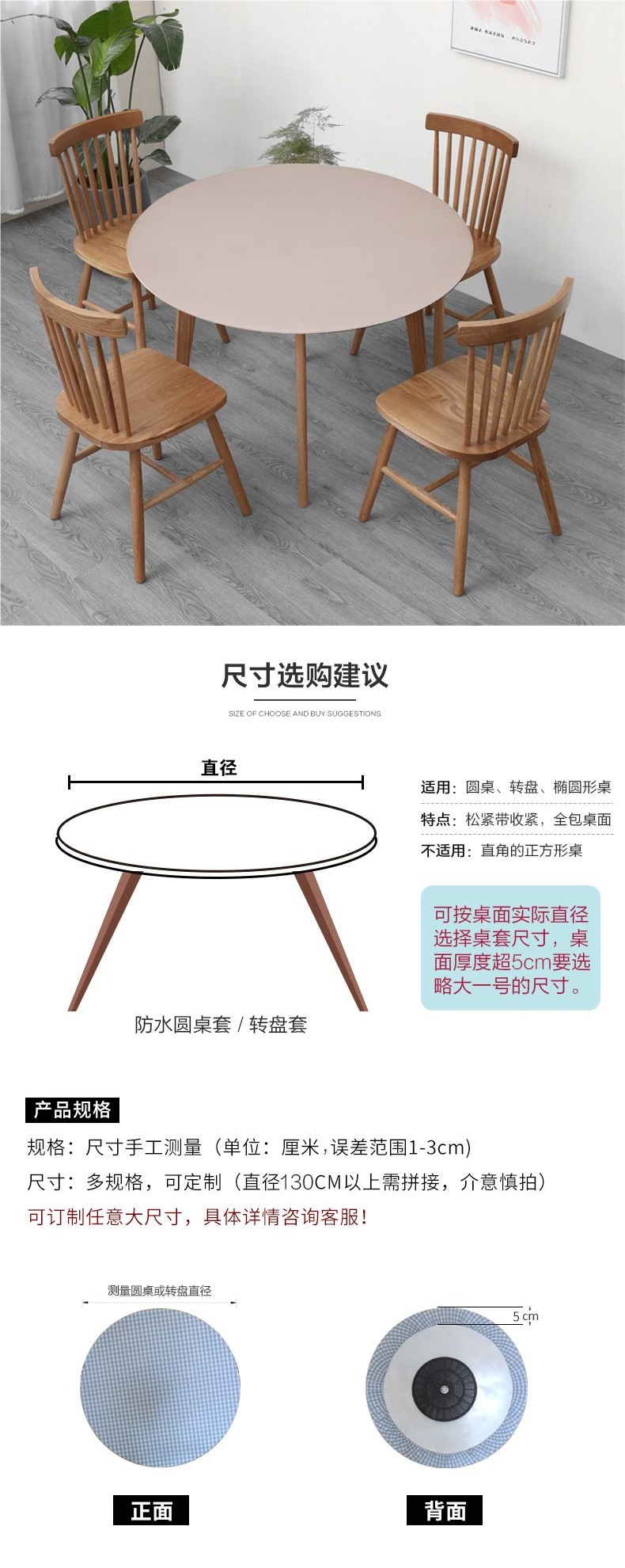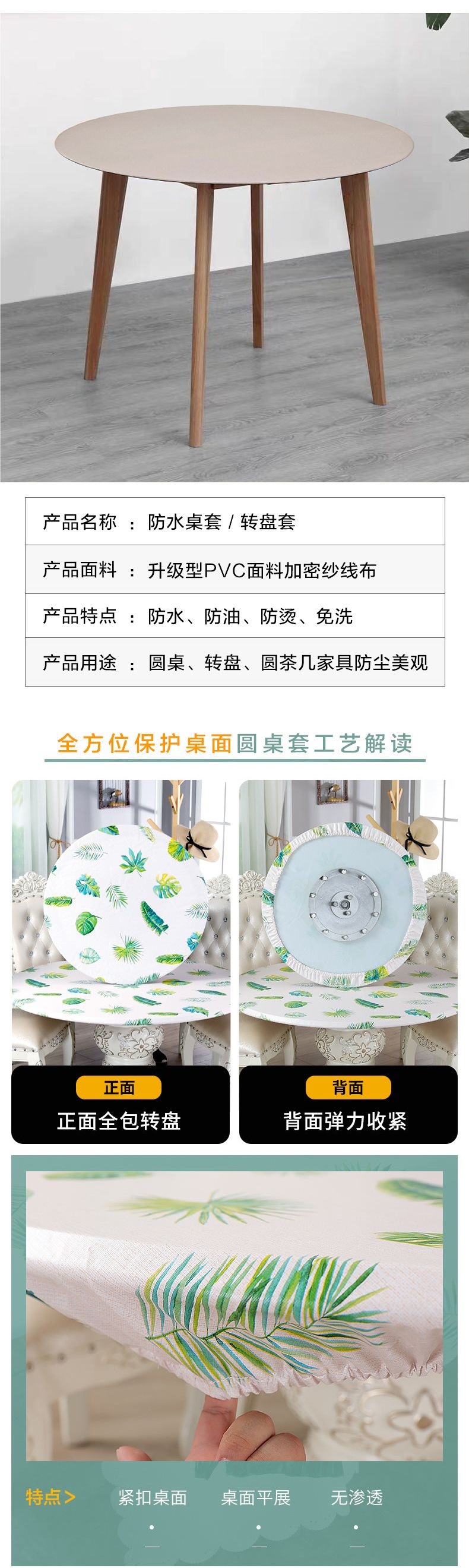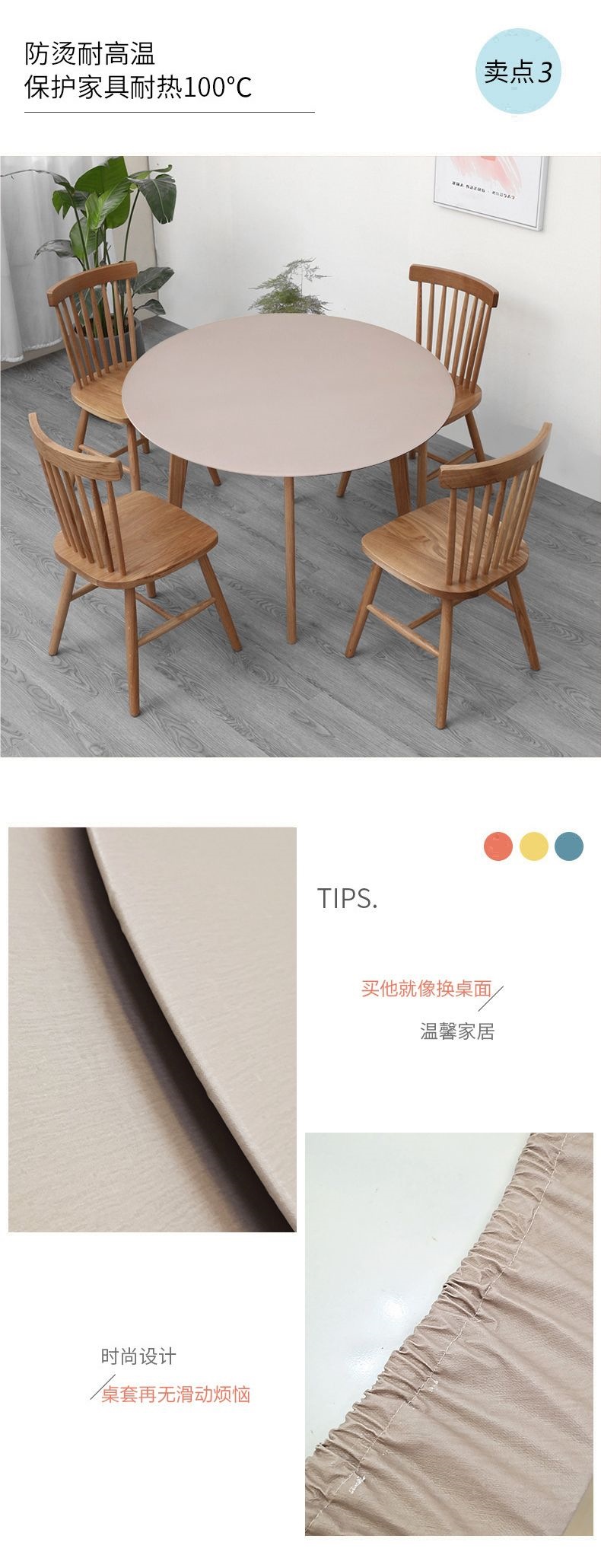 Mesa redonda color sólido impermeable a prueba de agua a prueba de aceite mesa redonda cubierta mesa de té almohadilla mesa
