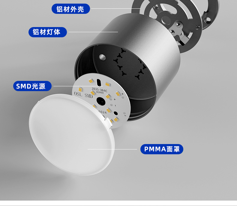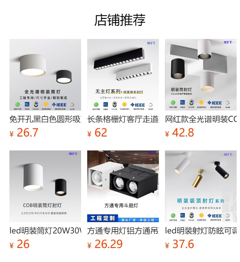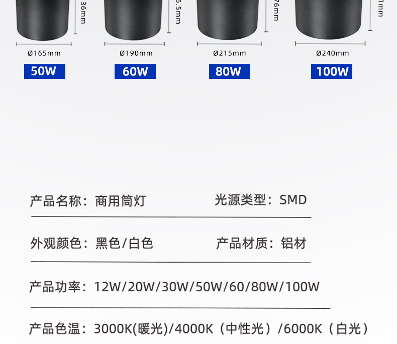Led luz descendente de alta potencia redonda de 8 pulgadas 60W80W100W tienda centro comercial sala de exposiciones sin agujeros de ingeniería luz descendente