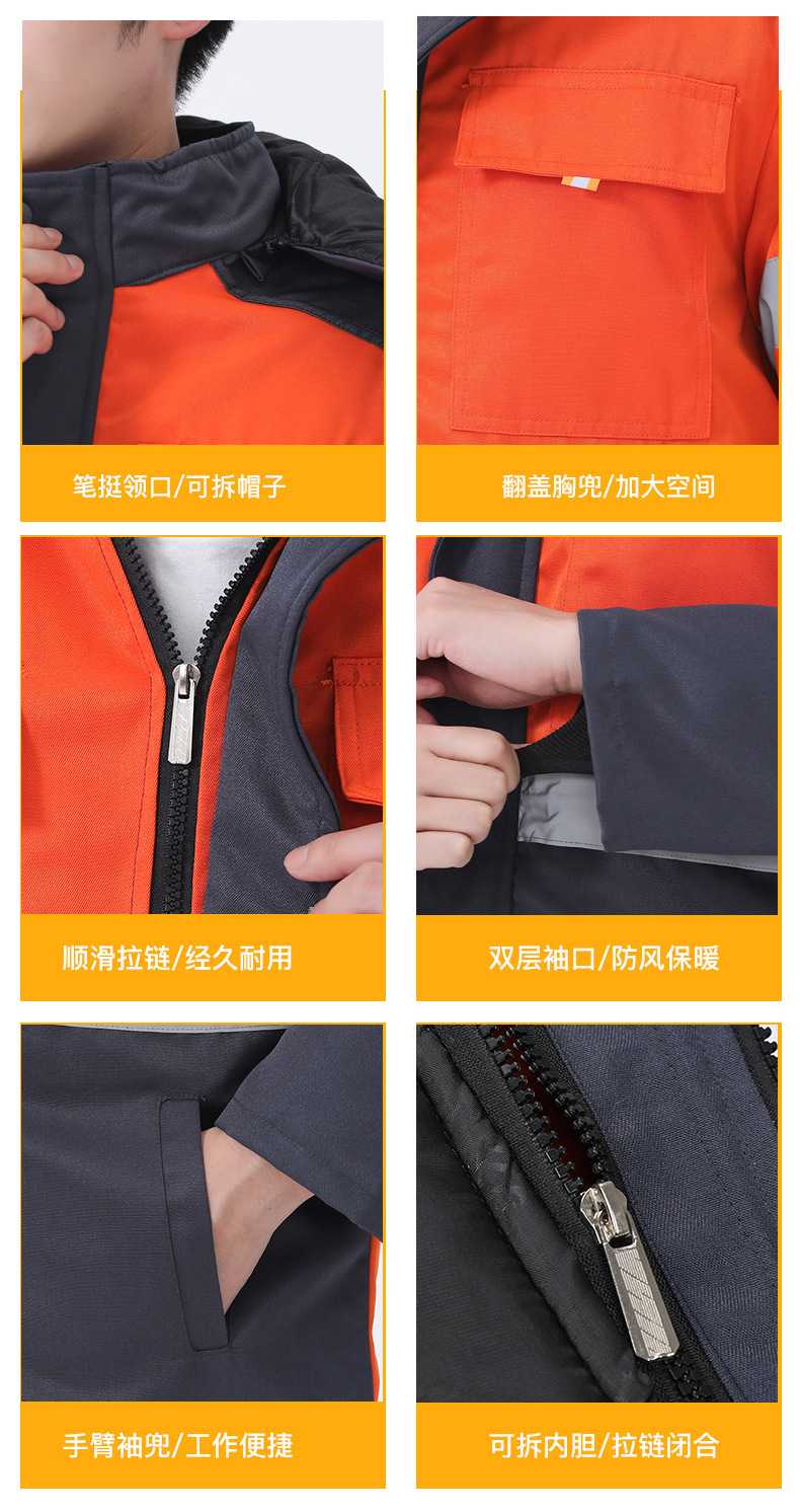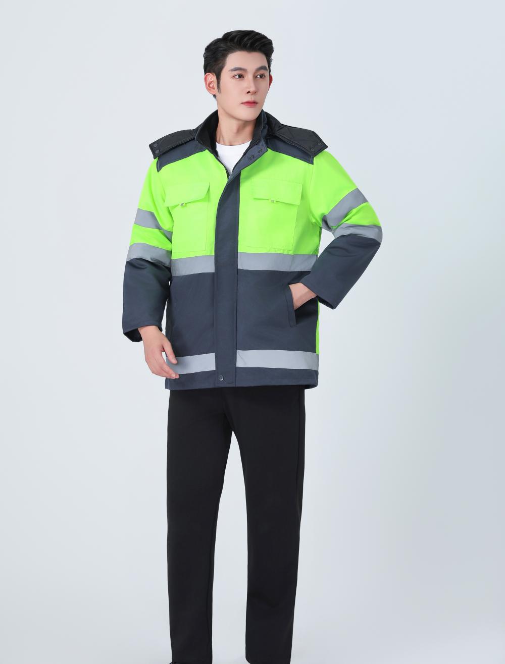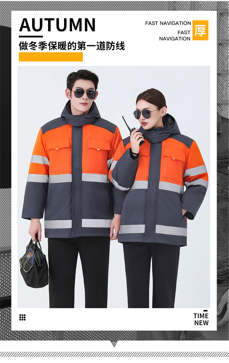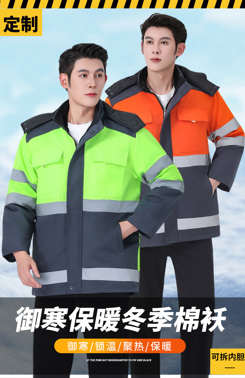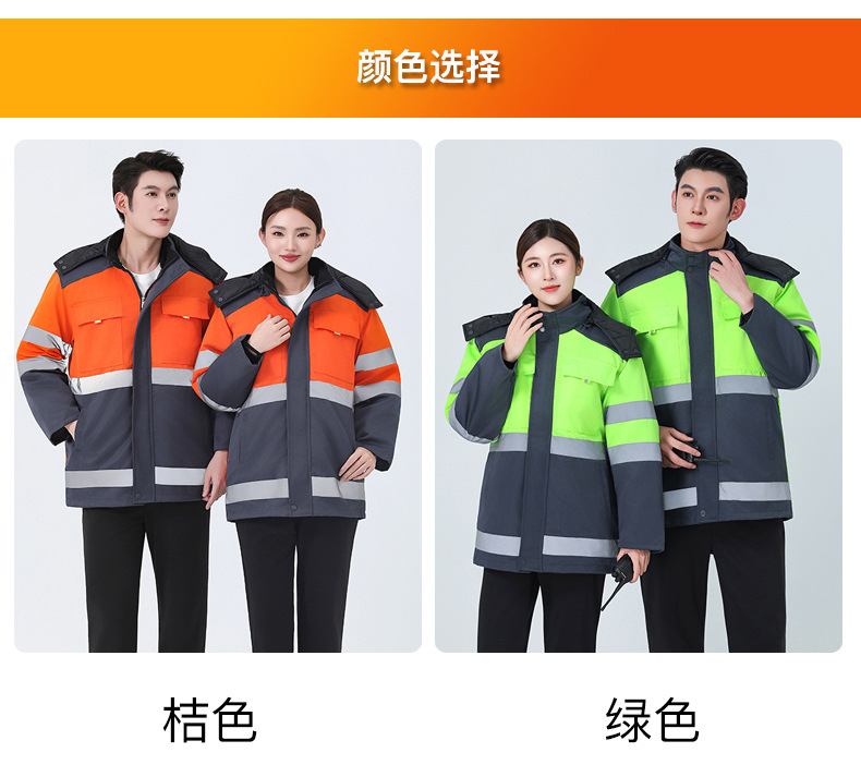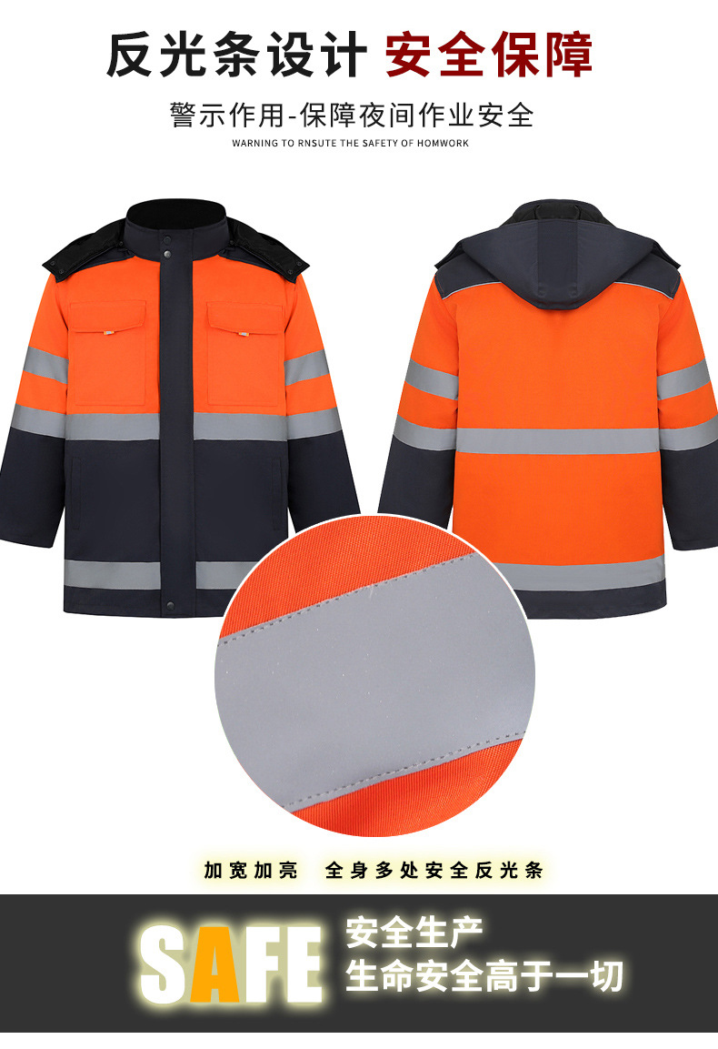 Invierno reflector advertencia ropa de trabajo de algodón hombre ropa de algodón cálida rescate de carretera sanitario municipal ropa de trabajo