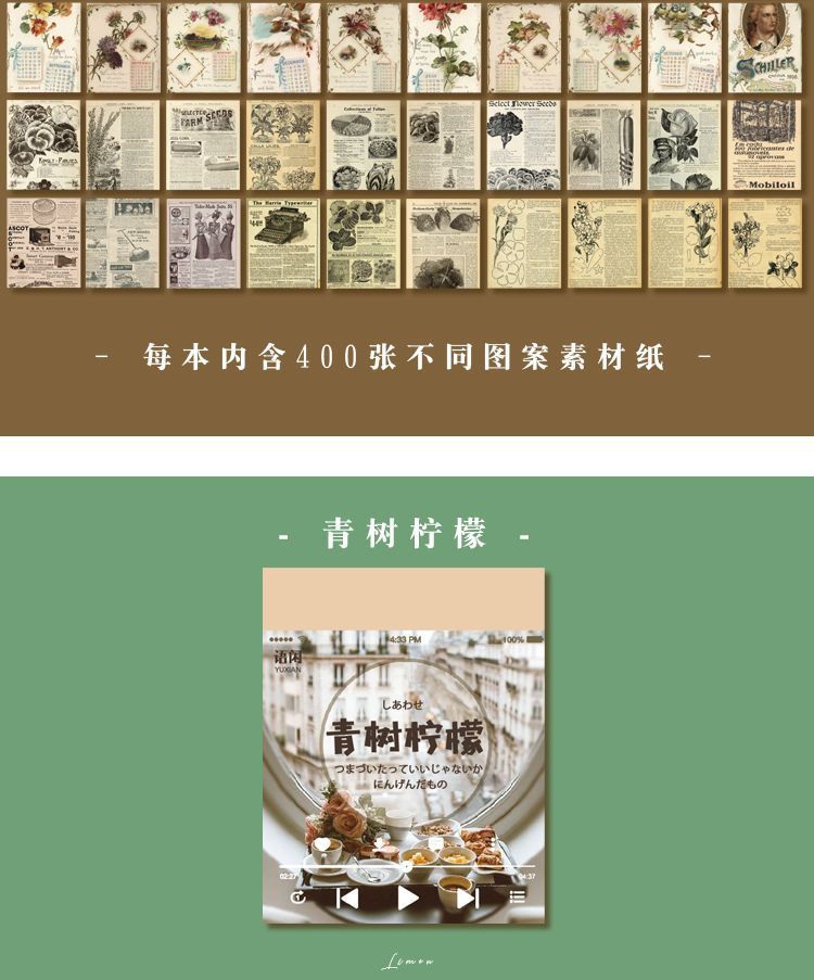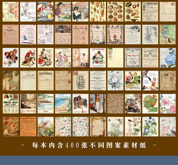 400 hojas de material de papel collage de cuentas de mano no adhesivo cuentas de mano vintage notebook de viento