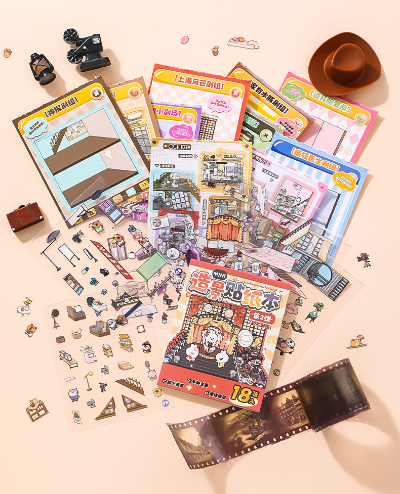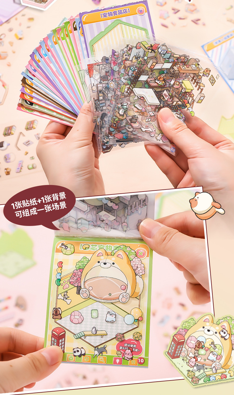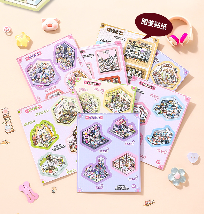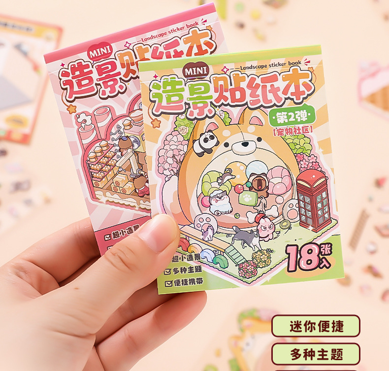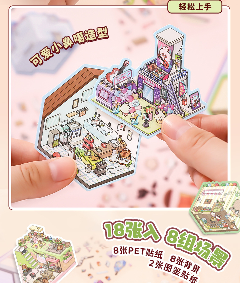 Xinmo mini papel de paisajismo libro de pegatinas de escenas en miniatura de animales lindos 3D cabina tridimensional collage hecho a mano para niños