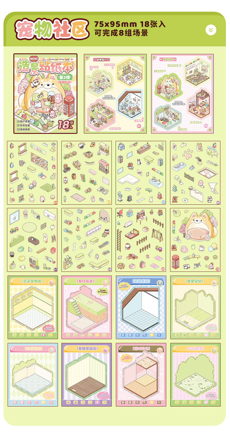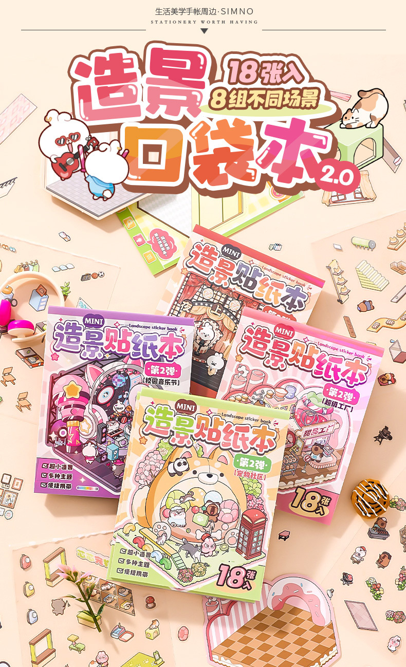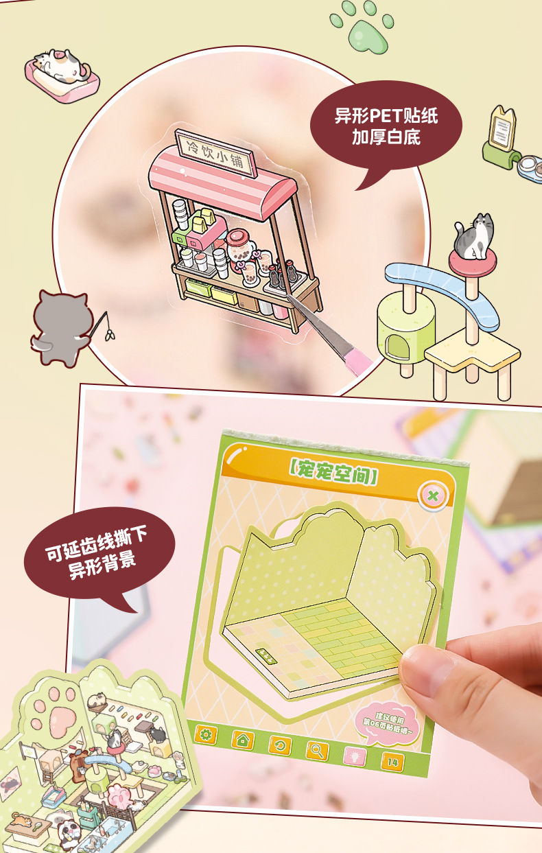 Xinmo mini papel de paisajismo libro de pegatinas de escenas en miniatura de animales lindos 3D cabina tridimensional collage hecho a mano para niños