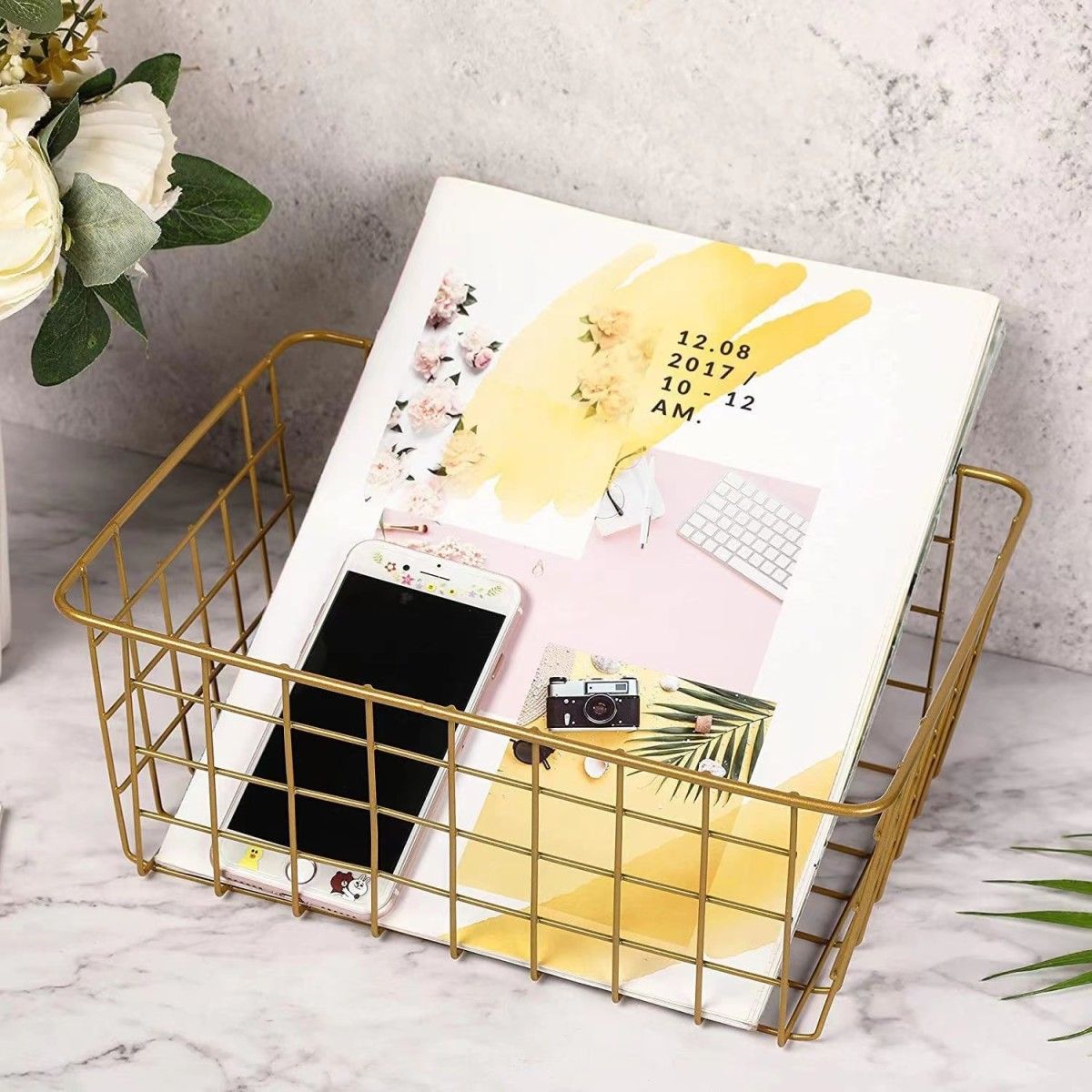 ins canasta de almacenamiento de hierro forjado, cosméticos, bocadillos, artículos de cocina, malla de almacenamiento de escritorio, canasta de almacenamiento simple, gran capacidad