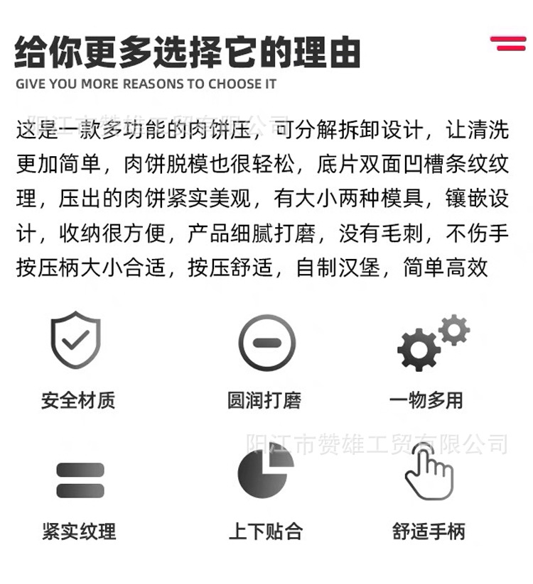 Fábrica directa de prensa de carne de hamburguesas molde de prensa de carne manual redonda DIY gadget de cocina