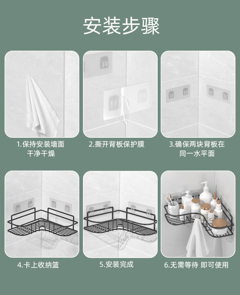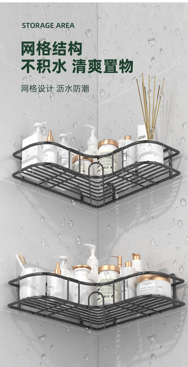 Estante de baño de esquina de acero inoxidable Estante de almacenamiento de baño sin perforación Estante triangular de pared de baño