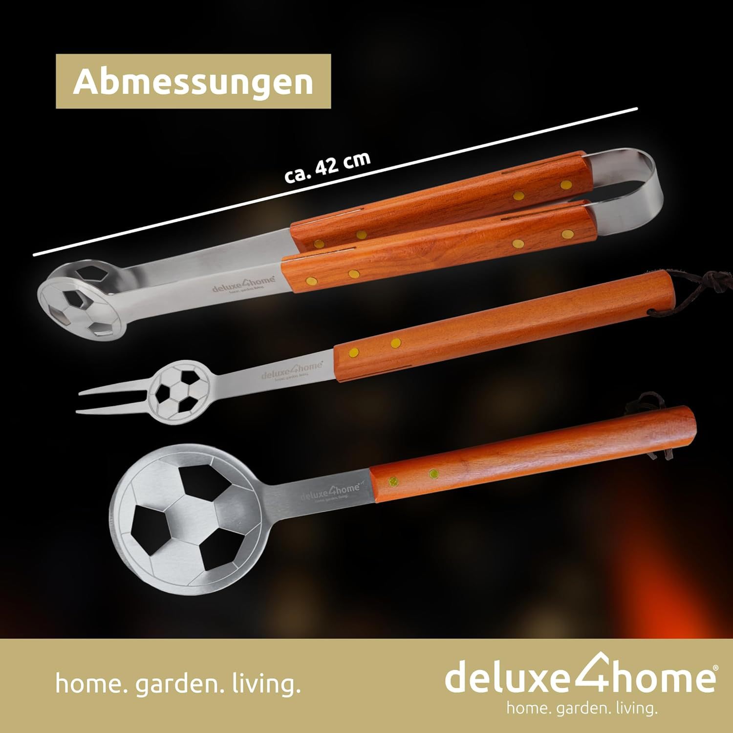 Amazon Cross-border venta caliente fútbol de acero inoxidable juego de utensilios de parrilla con mango de madera al aire libre BBQ herramientas de barbacoa combinación de bolsa de tela